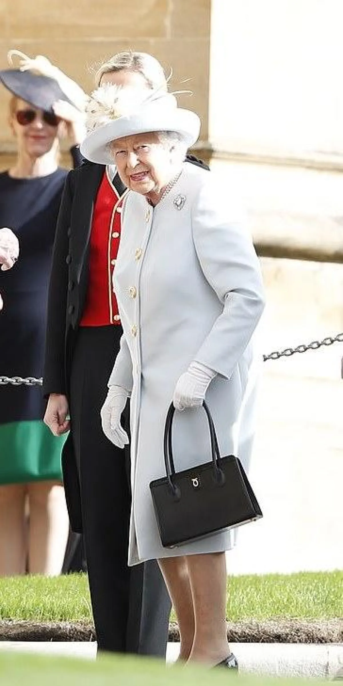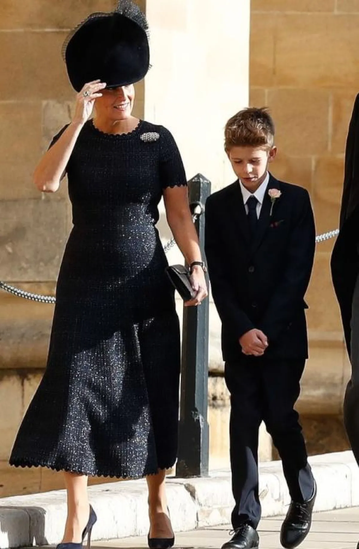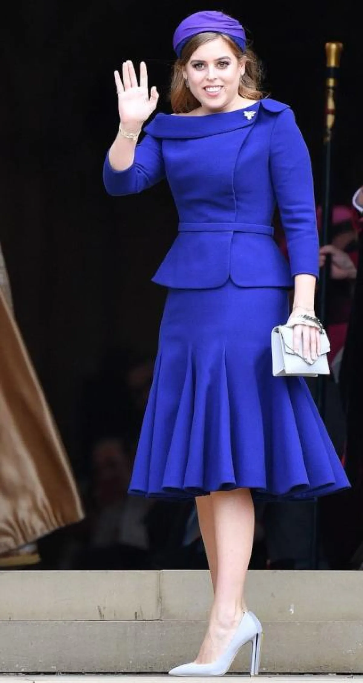 الأميرة بياتريس Beatrice اختارت تيور باللون الأزرق النيلي عبارة عن جاكيت بليزر وتنورة ميدي من دار رالف أند روسو Ralph&Russo وقد زينت الاطلالة بتوربان على الرأس، وحقيبة يد مبتكرة وحذاء كعب عالي باللون الرمادي.