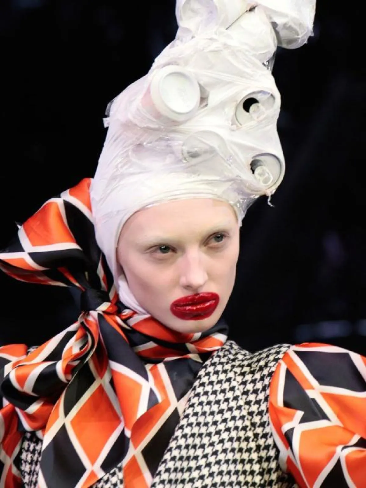 الشكل الكلاسيكي المستوحى من زمن الستينات فكرة جيدة، إن كنت لا تحبين تغيير شكلك كثيرا، كاللوك من Jeremy Scott جيرمي سكوت، مع وضع أحمر شفاه بألوان النيون الفاقعة، كما لفتتنا لمسة رسومات الرموش بقلم الكحل، مع تسريحة الشعر المستوحاة من زمن الفن الجميل.