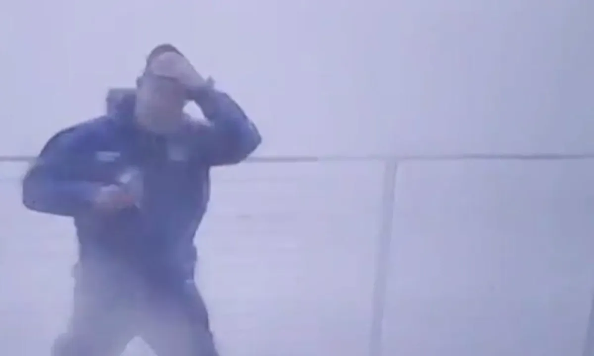 ويظهر الفيديو الذي تناقلته العديد من وسائل الإعلام، صعوبة تحدث خبير الأرصاد الجوية؛ لأنه كان يصارع رياحاً وأمطاراً قوية، وطار باتجاهه فجأة لوح خشبي ضخم، لكنه ولحسن الحظ لاحظها واستطاع تفاديها في الوقت المناسب، وبقي على قيد الحياة بعد أن قفز جانباً. لكن اقتراب الموت من مذيع النشرة الجوية، لم يثن «كانتور» عن معاودة المحاولة للظهور على الهواء مباشرة بعد أن بدل طاقيته العادية بخوذة واقية.