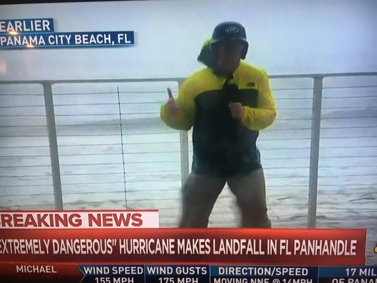 وضرب مراسل نشرة الأخبار الجوية الأمريكي «جيم كانتور»، مثالاً على ما ذكرناه سابقاً، بعد أن تمكن بصعوبة شديدة من تفادي لوح خشبي طار باتجاهه أثناء البث المباشر لنقل حالة الطقس. حيث تم نشر أجزاء مصورة من النشرة الجوية على تويتر، تظهر «كانتور» وهو في مدينة «بنما سيتي» في ولاية «فلوريدا» الأمريكية، خلال قيامه بتغطية أخبار الإعصار الذي أطلق عليه اسم «مايكل» عندما كان في ذروته وشدته الخطيرة.