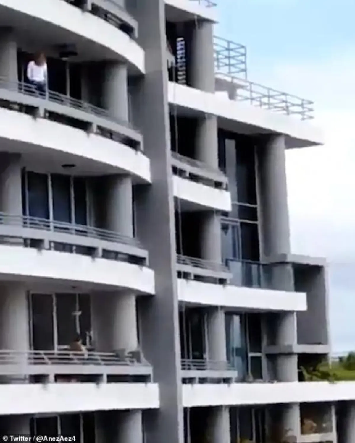 وقيل إن عمال البناء الذين يعملون في برج مجاور شاهدوها وهي تستعد للجلوس على الدرابزين، وصرخوا بها عالياً طالبين منها النزول لأنه مرتفع خطر جداً غير آمن، لكن هبوب الرياح القوية في الحي التي كانت موجودة في تلك اللحظة، منعت الضحية ساندرا من سماع تحذيراتهم لها.