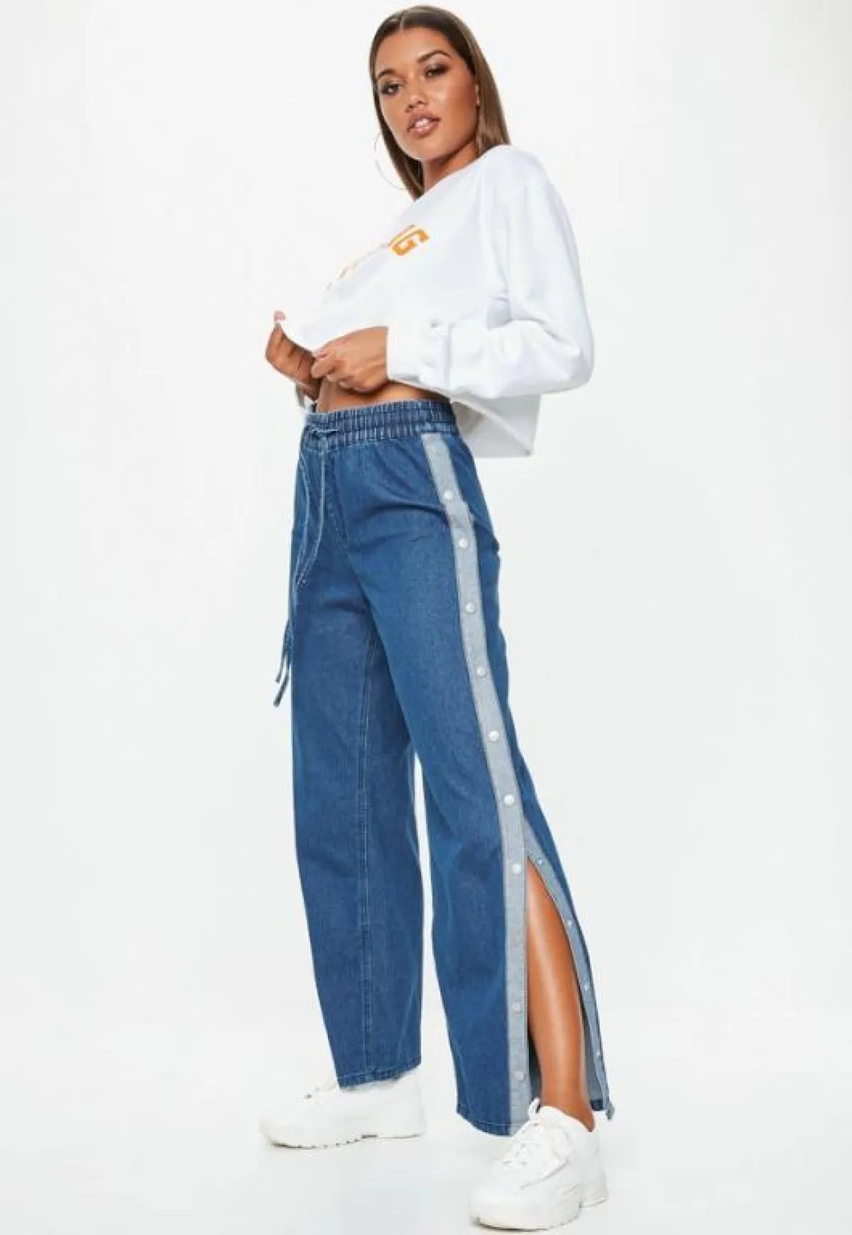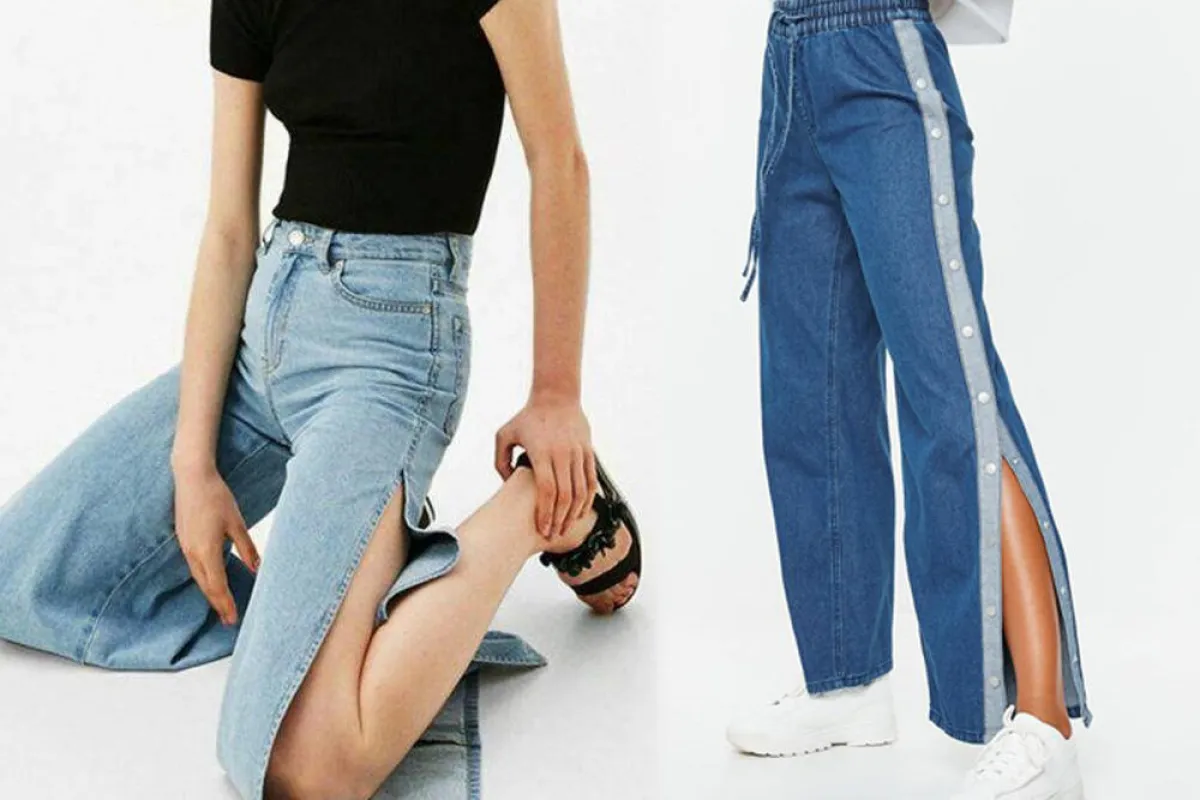 اختفى الجينز السكيني أو الضيق، وأصبحت الموديلات المزينة بالأرجل الواسعة التي لا تلتصق بساق المرأة هي الأكثر أناقة، والجديد هي صيحة شق الساق الذي يزين الأرجل الواسعة، وتنوعت الموديلات بين شق يمتد إلى نصف الساق مع موديل الـ flare أو شق محدود يمتد بالكاد إلى بداية الكاحل.