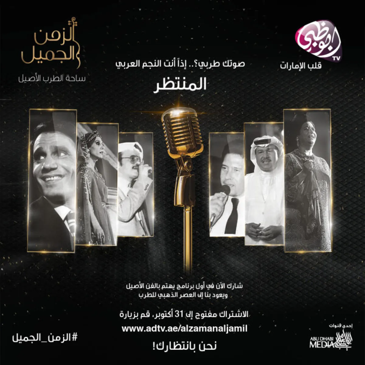 أعلنت شبكة قنوات تلفزيون أبوظبي التابعة لأبوظبي للإعلام عن إطلاق برنامج المسابقات الغنائي الجديد «الزمن الجميل»، بالتعاون مع مجموعة بيراميديا للاستشارات والإنتاج الإعلامي.