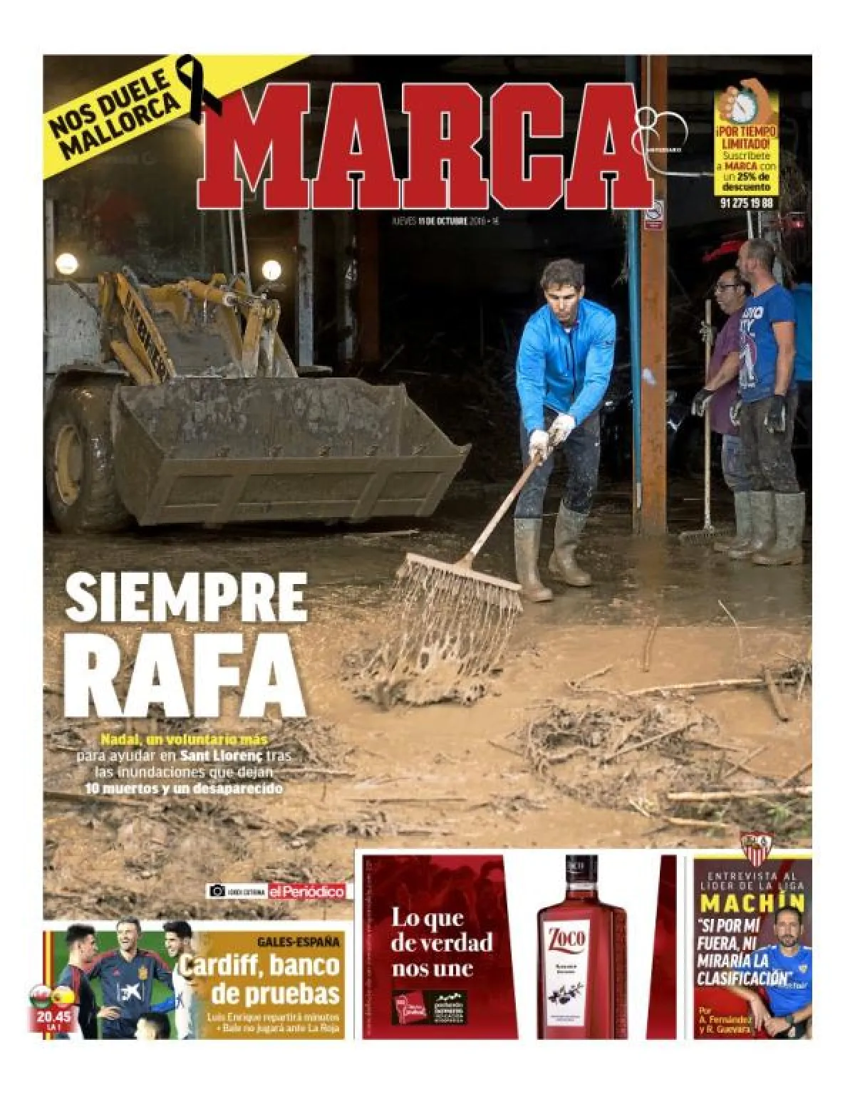ببادرة إنسانية مهمة، قام بها نجم رياضة التنس الإسباني الشهير «رافائيل نادال»، بعد أن قاد حملة لمساعدة سكان جزيرة «مايوركا» الإسبانية، في التخلص من آثار الفيضان الذي ضرب الجزيرة، بعد أن غمرتها الفيضانات خلال الأيام القليلة الماضية، حيث نشرت صحيفة «ماركا» الإسبانية، عدداً من الصور والفيديوهات لـ«نادال» وهو منهمك في العمل لمساعدة سكان الجزيرة في إزالة ما خلفه الفيضان في الشوارع.