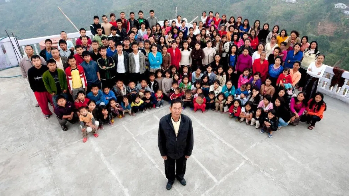 تعيش في الهند أكبر عائلة في العالم، وهي تتكون من رجل و39 زوجة، و94 ولداً وبنتاً، و33 حفيداً، ويعيشون في بناية مكونة من 4 طوابق و100 غرفة في قرية في ولاية ميزورام الهندية.