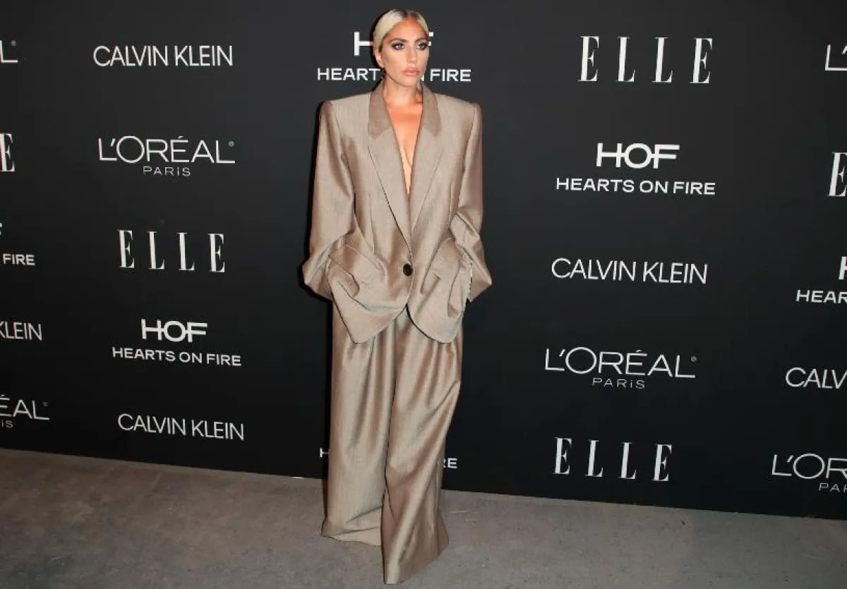 شاهدنا الليدي غاغا Lady Gaga مؤخرًا في بدلة رسمية باللون الرمادي، اختارتها من “مارك جاكوبس” Marc Jacobs وقد بدت اطلالتها فيها ذكورية بعض الشيء، ولاسيّما أنّ قصة البدلة فضفاضة ولونها شاحب بعض الشيء، وقد اعتمدت معها تسريحة شعر مشدودة للخلف، واستغنت عن الاكسسوارات بشكل كامل.