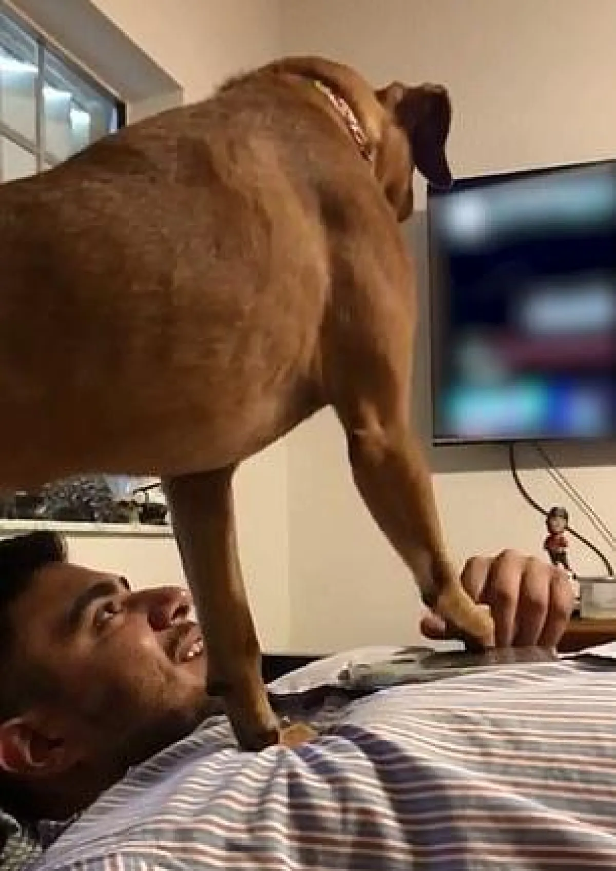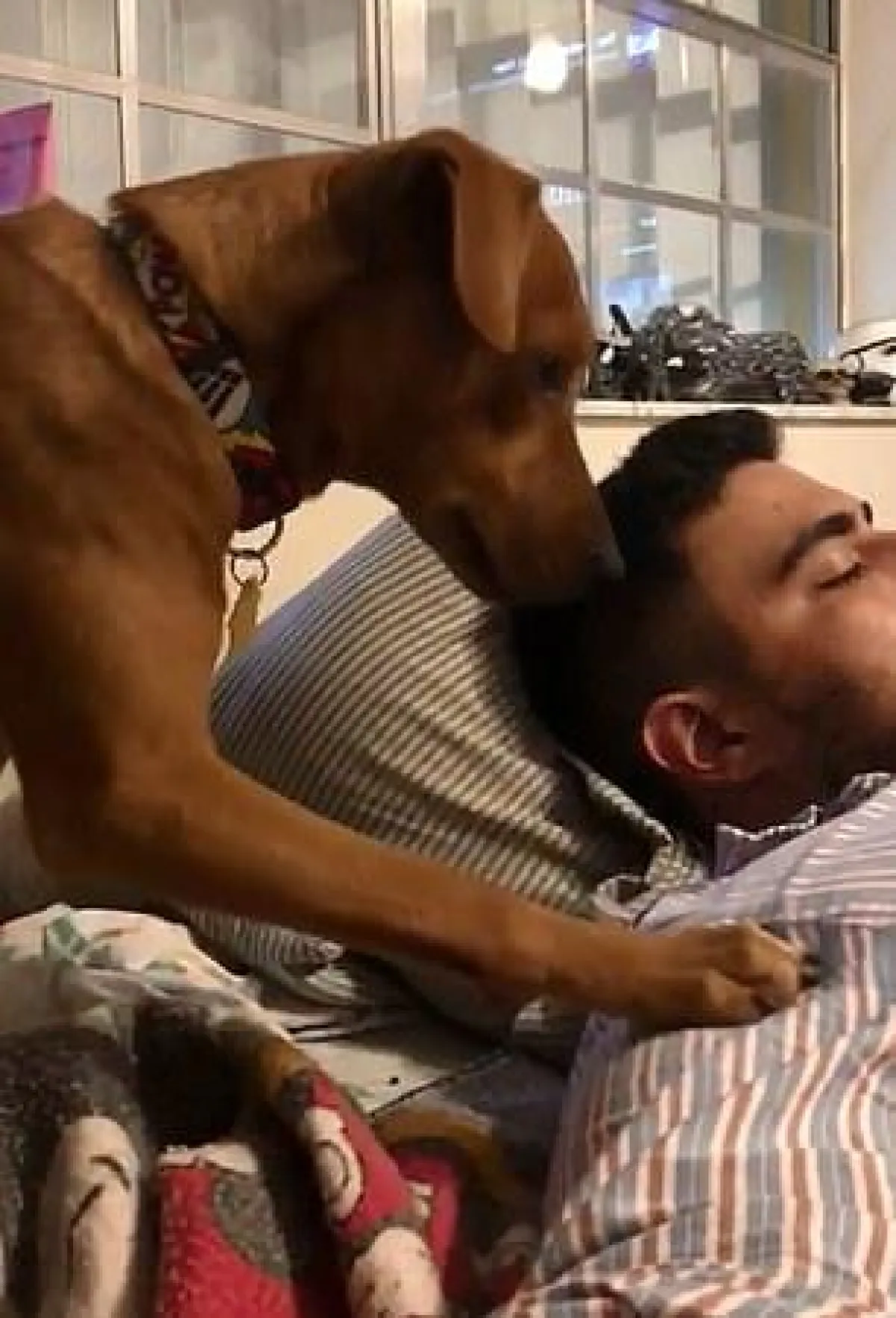 قفز الكلب على صدر صاحبه