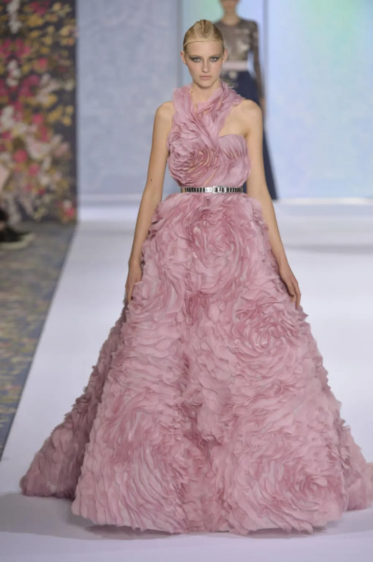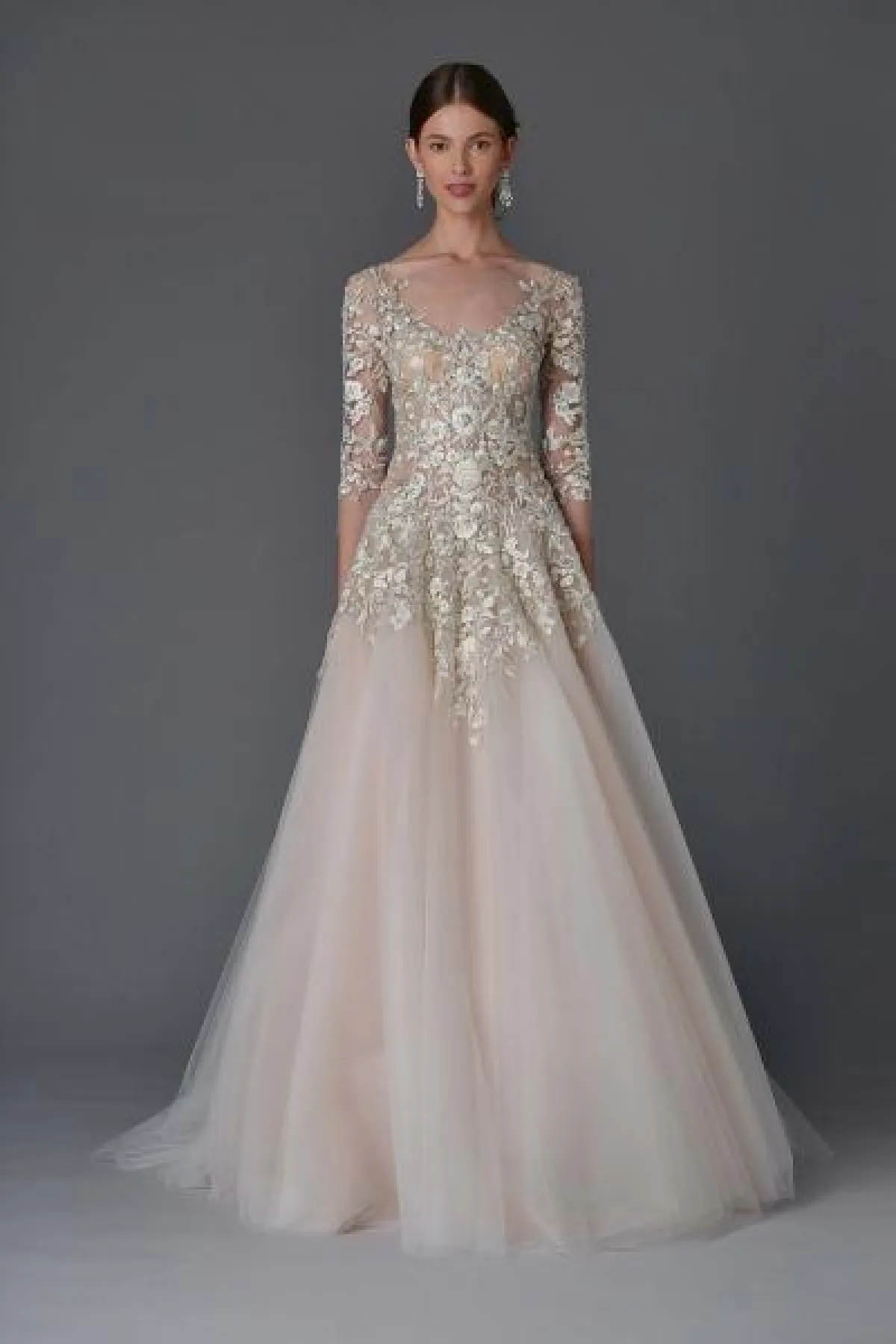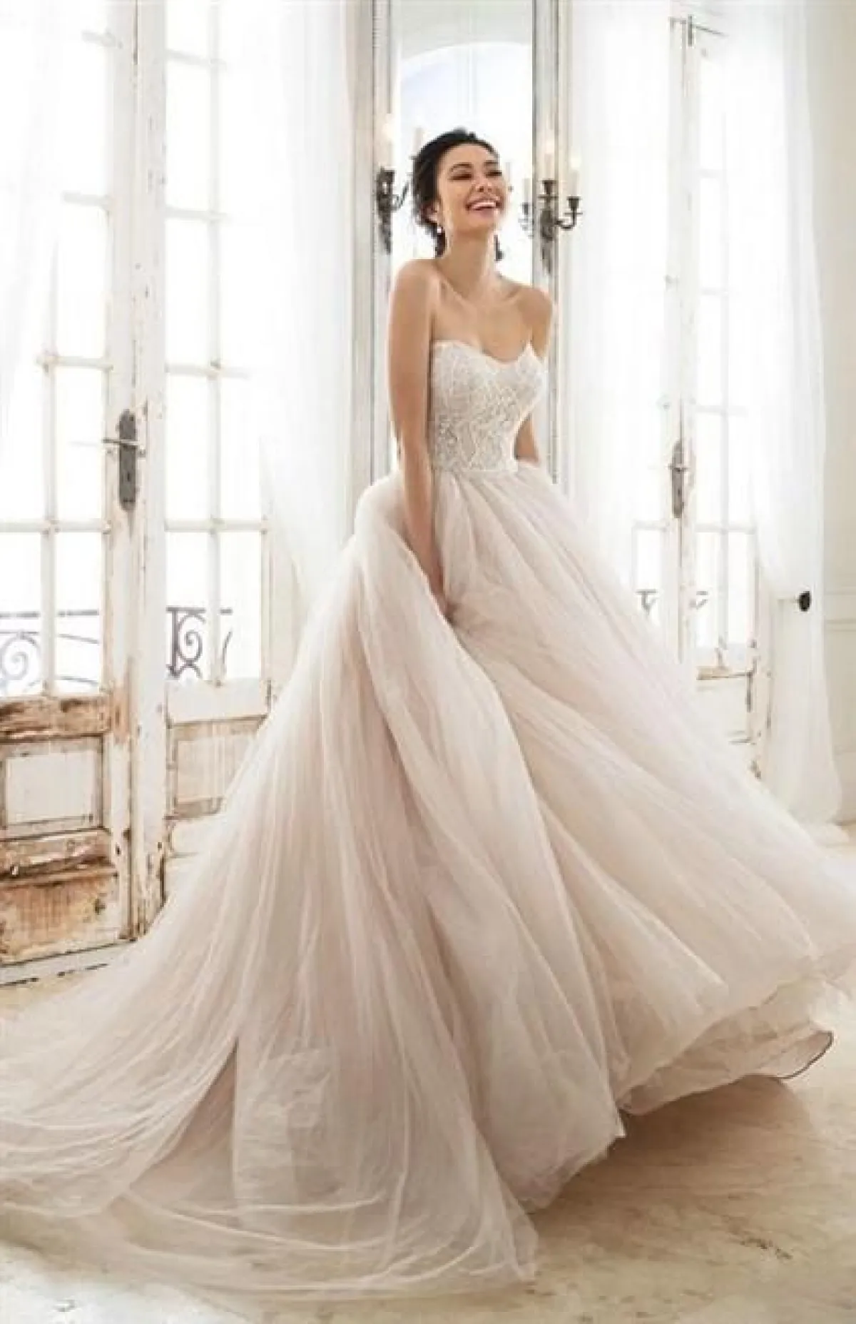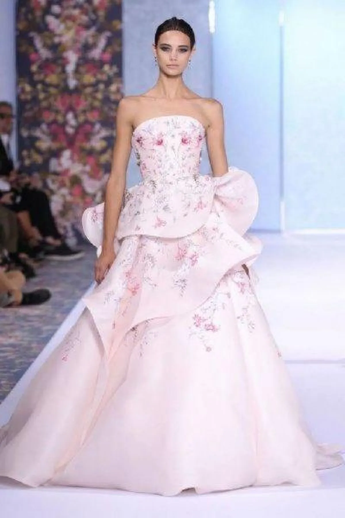تابعي الصور منها واستوحي فستان زفافكِ باللونين الزهري والعاجي .