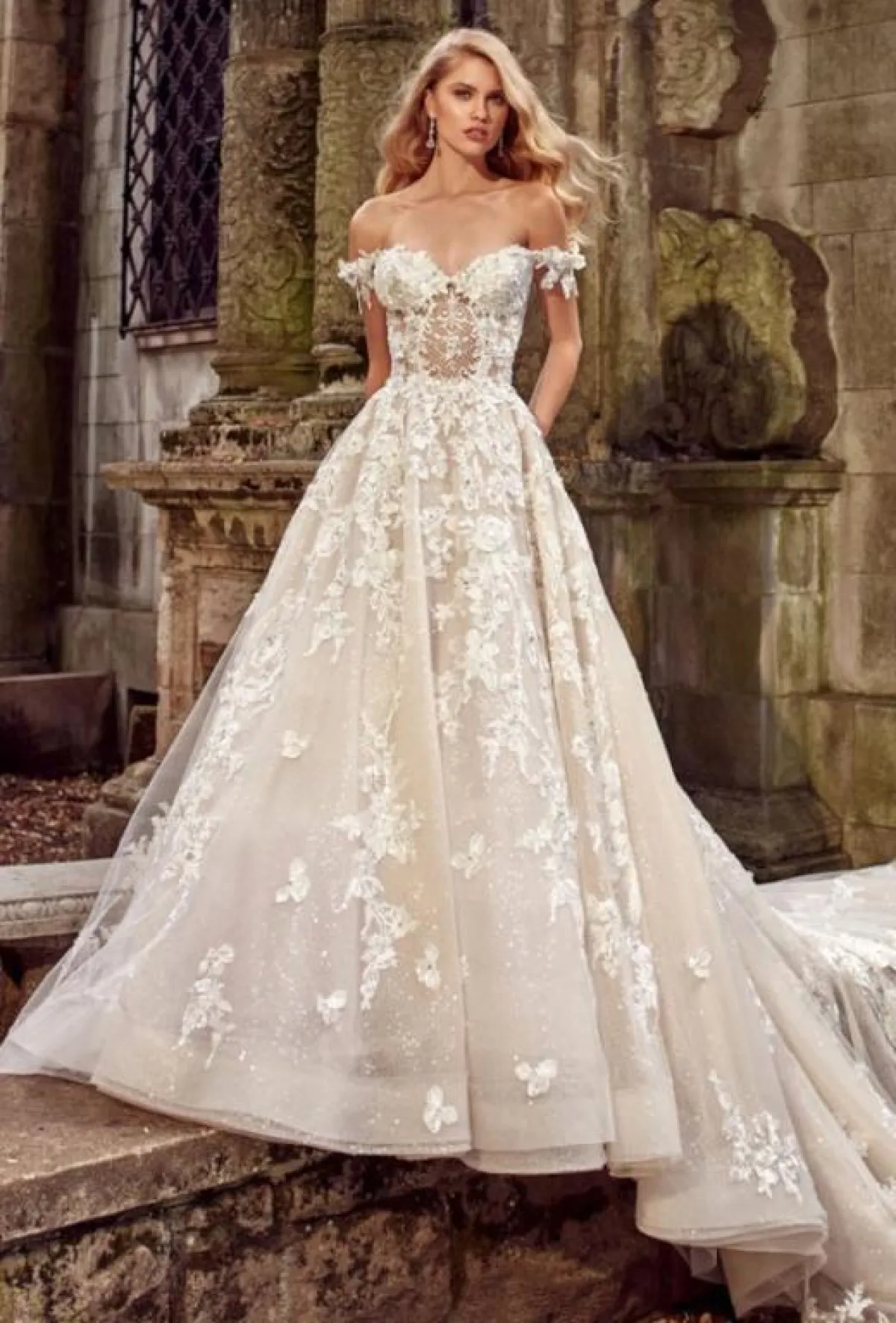 كذلك هو حال اللون العاجي الذي أصبح بديلًا عن اللون الأبيض الناصع، ليصبح سيّد الألوان الأنيقة في فساتين الزفاف، نظرًا لثقله في الأقمشة والتصاميم.