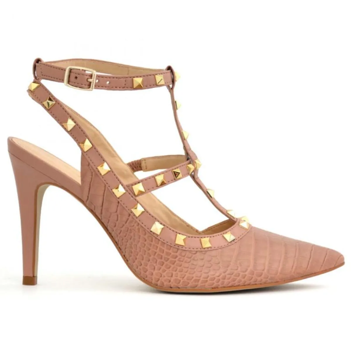 • حذاء بكعب رفيع نسائي، مرصع بطبعة جلد حيواني وردي اللون، من «تاماريس»
