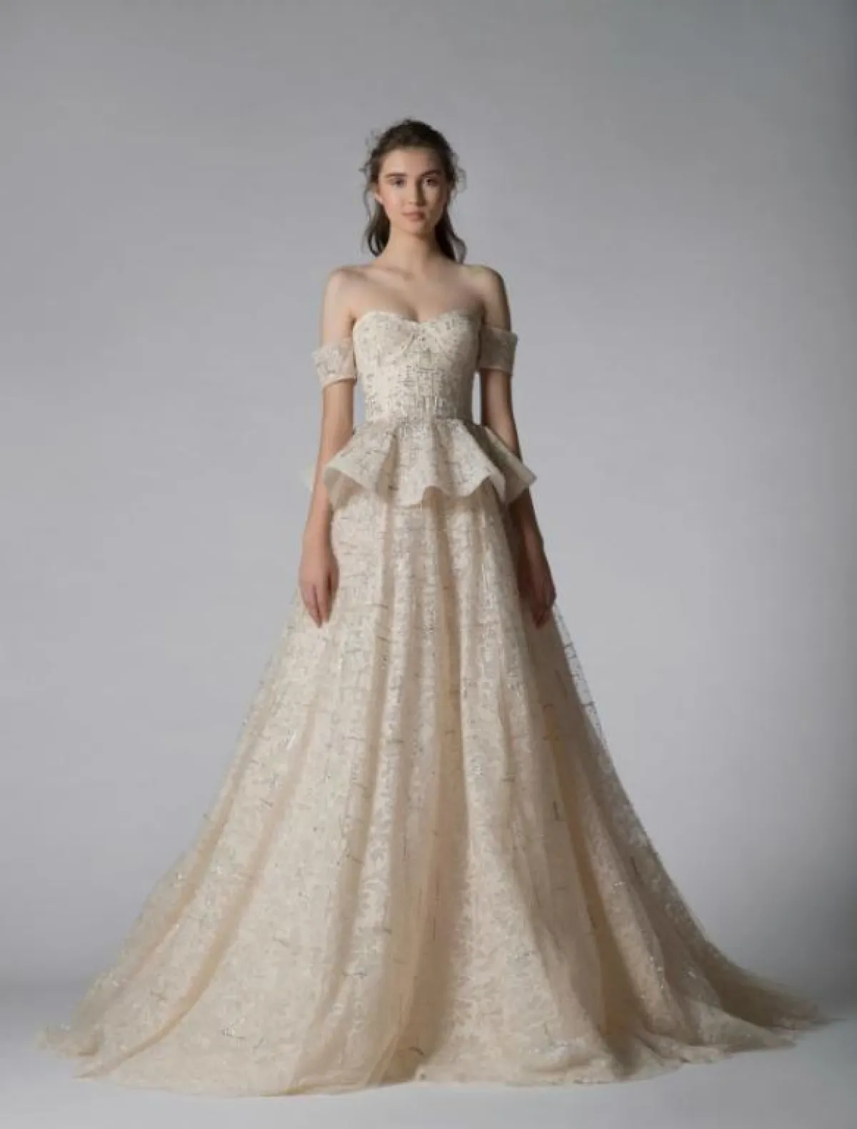 فقدم فساتين منفوشة متنوعة، مثل الفساتين المطرزة، الفستان بصيحة الـPeplum، والفستان الأوف شولدر مع الأكمام الطويلة.