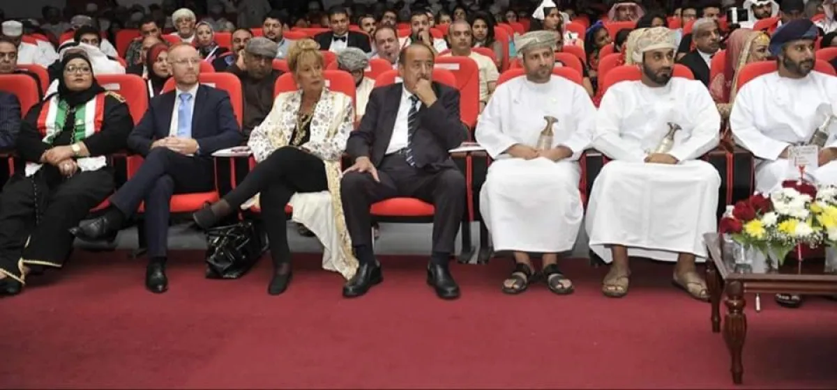كرّم وزير الإعلام في سلطنة عُمان الدكتور عبد المنعم بن منصور الحسني، كلًّا من النجوم السوريين: منى واصف، وأسعد فضة، ومصطفى الخاني، ضمن فعاليات مهرجان المسرح في سلطنة عُمان (مهرجان الدن العربي).