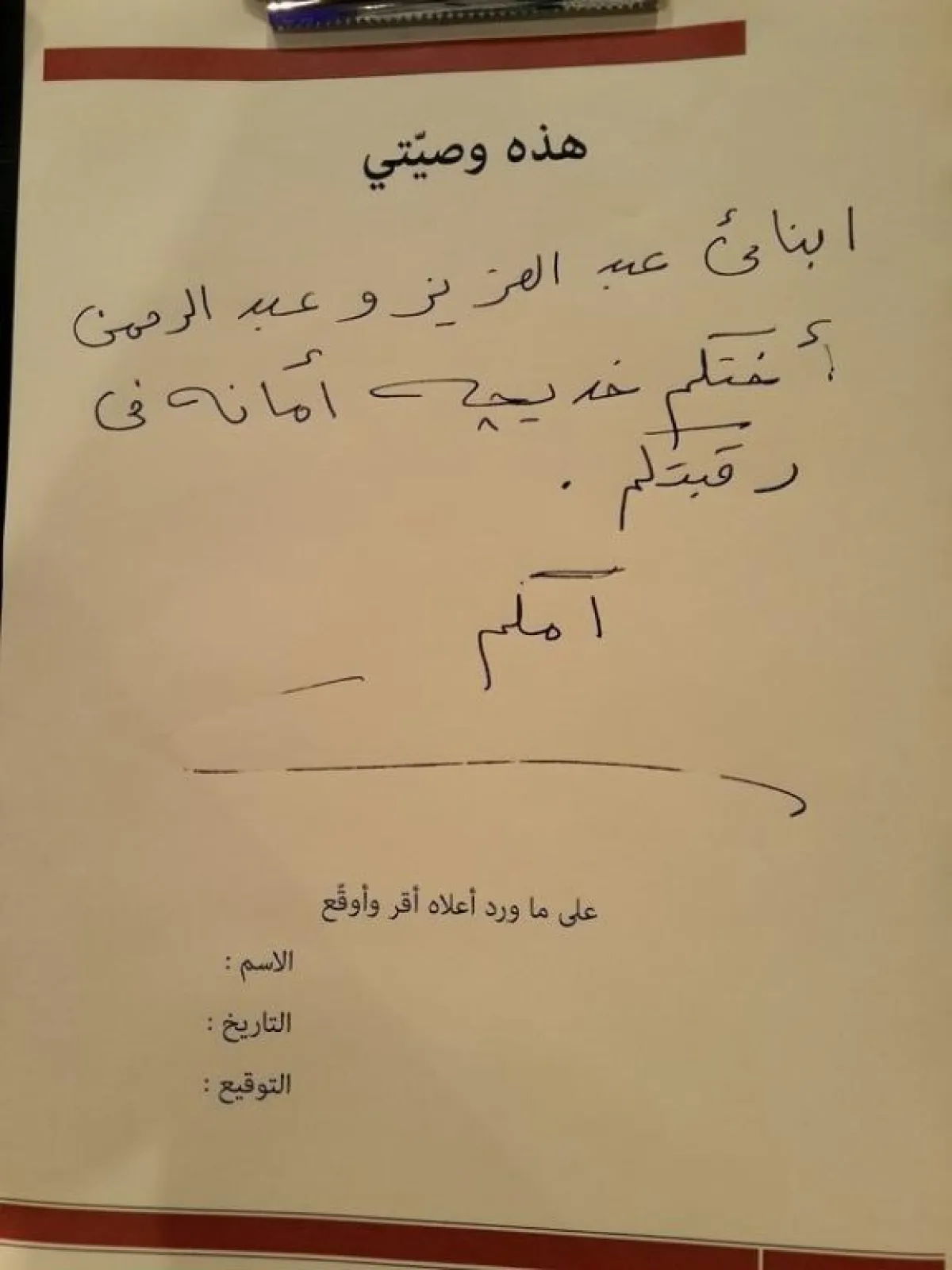 كما تحدّثت عن ابنتها خديجة، الطفلة التي تبنّتها من الميتم عندما كانت في شهرها الثاني بعد وفاة والديها، وقالت إنّ الفكرة خطرت لها بعد أن طلب ولداها منها أن تحضر لهما كلباً من بيروت، فاشترت الكلب واشترت معه سريراً وطعاماً وأغراضاً للعناية به، فتساءلت لماذا تشتري كل هذه الحاجيات لأجل كلب بينما هناك أطفال دون مأوى، ولم تكد تطأ أرض القاهرة وتسلّم أولادها الكلب، حتى توجّهت إلى الميتم وكانت الكهرباء مقطوعة والجو خانقاً وكل الأولاد يبكون باستثناء خديجة التي أمسكت بيدها وابتسمت لها، ومن تلك اللحظة أصبحت ابنتها، وقالت إنها لن تصارحها بحقيقة وضعها كطفلة متبناة إلا عندما تبلغ التاسعة من عمرها. بسمة قالت إنّ عمر خديجة اليوم أصبح خمس سنوات، وكتبت بناءً على طلب نيشان وصية إلى ولديها في حال وفاتها، طالبةً منهما الاهتمام بخديجة لأنها أمانة في رقبتهما.