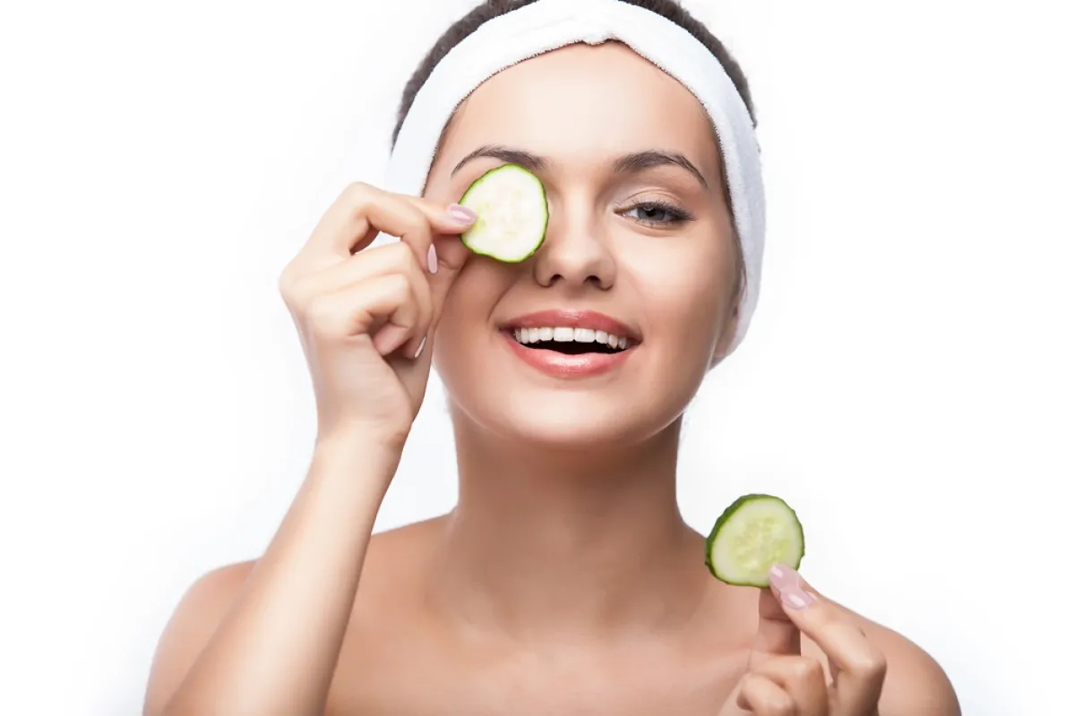 يتم استخدام شرائح الخيار منذ قرون من قبل جداتنا لتخفيف الجيوب و الهالات السوداء تحت العينين. اقطعي شريحتين من الخيار واتركيها في الثلاجة لمدة لا تقل عن ساعة. استلقي ورأسك مرفوع قليلا وضعي شريحة خيار على كل عين لمدة 10 إلى 15 دقيقة مع إغلاق عينيك.