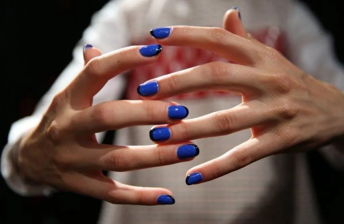 المناكير الأزرق أيضًا من الصيحات الرائجة لخريف 2018، ويليق جدًّا بالجينز الذي لا يمكن أن تتخلّي عنه في يومياتِك. اختاريه بالستايل المُطفَأ مع إضافة اللمعان إلى بعض الأظافر فقط.