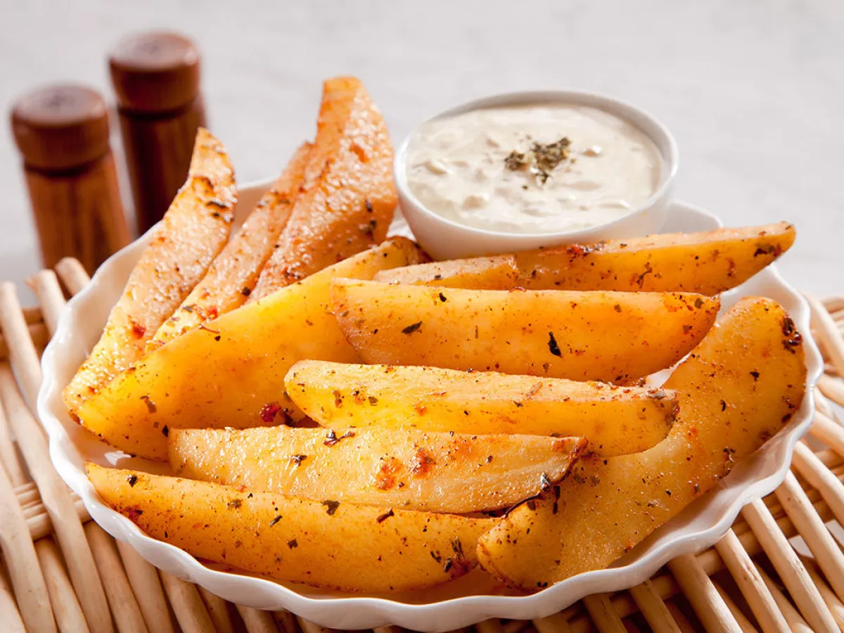 3-لإعداد صلصة الكريما الحامضة: في طبق عميق، ضعي الكريما والأوريغانو والملح والثوم عبر استعمال مضرب يدوي. قلبي هذه المكوّنات لتحصلي على كريما ناعمة ومتجانسة. قدّميها إلى جانب البطاطس.