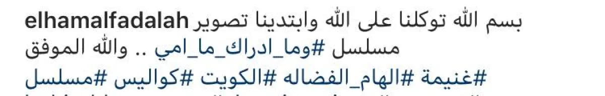 وأشارت إلهام إلى أنها في بداية تصوير العمل، متمنية التوفيق، هذا وقد روَّجت بعض الفنانات للمسلسل قبل عدة أيام، منهن هنادي الكندري، التي تلعب دور البطولة في المسلسل، حيث كتبت هي الأخرى منشورًا على إنستقرام، مشيرة إلى بدء تصويرها العمل.
