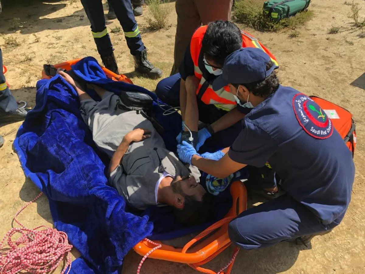 وبحسب صحيفة "سبق" السعودية، فإن الفريق وصل إلى مكان البلاغ الذي تلقاه صباح اليوم الأحد، وتبين وجود شاب يعاني من كسر بالذراع الأيمن، وفي حالة إغماء.