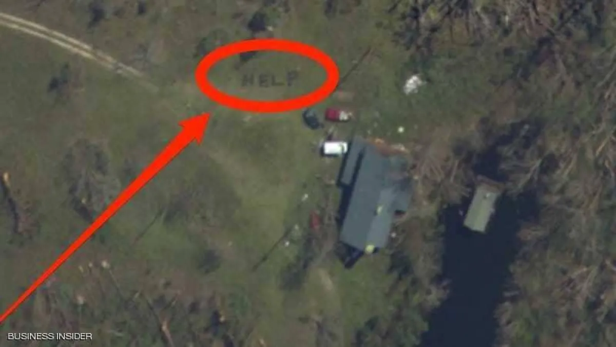 وبحادثة انتشرت بكثرة خلال الأيام القليلة الماضية، عندما دمر إعصار «مايكل» أجزاء عدة من من الولاية الأمريكية، في تلك الظروف العصيبة، لجأت السيدة «آمبر جي» إلى خرائط الإدارة الوطنية للمحيطات والغلاف الجوي على الإنترنت، سعياً لتفقد الأضرار التي لحقت بممتلكات جدتها في منطقة «يانغزتاون»، لتفاجأ «آمبر جي» بمشهد لا يخطر على بال، حيث لمحت من خلال هذه الخرائط الجوية كلمة «هيلب HELP» أو «النجدة»، كانت مكتوبة على العشب بين الأشجار التي أسقطها الإعصار.