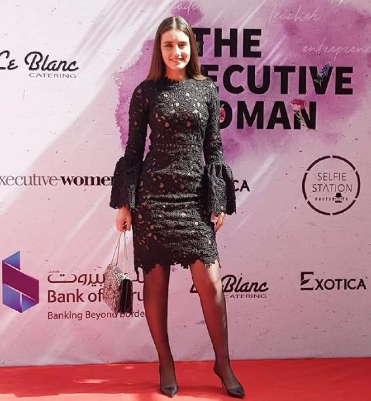 ياسمين صبري اختارت اطلالة مميزة في الفستان الأسود الكلاسيكي، حيث اختارته بقصة ضيّقة ومن دون أكمام، ونسقت معه شنطة يد كبيرة باللون الزهري من “فندي” Fendi، وحذاءً بكعب عالٍ باللونين الأسود والأحمر من “كريستيان لوبوتان” Christian Louboutin وزينت الفستان ببروش معدني من “شانيل” Chanel.