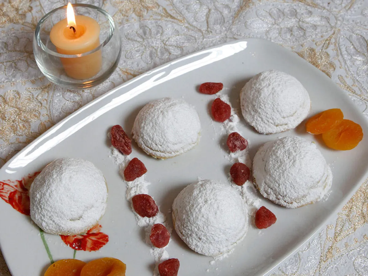 للحشو: -200 غرام من المشمش المجفف -100 غرا م من الفراولة المجففة طريقة تحضير الحشو: 1- يقطع المشمش والفراولة إلى قطع صغيرة. 2- يخلط المشمش مع الفراولة، حتى يتجانس هذا الخليط.