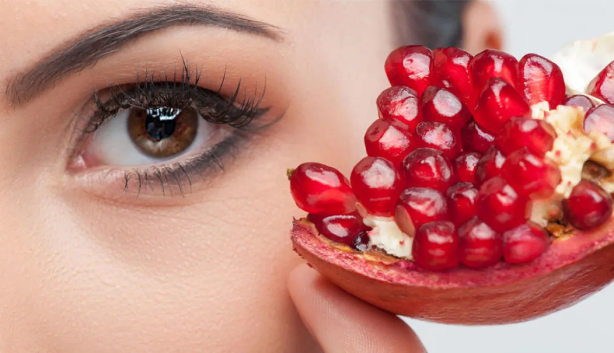 الرمان فاكهة خريفية شهيرة، وقد حان الوقت كي تستفيدي من فوائده الجمالية المذهلة ، فالرمان يحتوي على مضادات أكسدة طبيعية، وألياف تعمل على تغذية بشرتك، لتبدو نضرة حتى مع أجواء الخريف الباردة، التي قد تعرض بشرتك للجفاف.