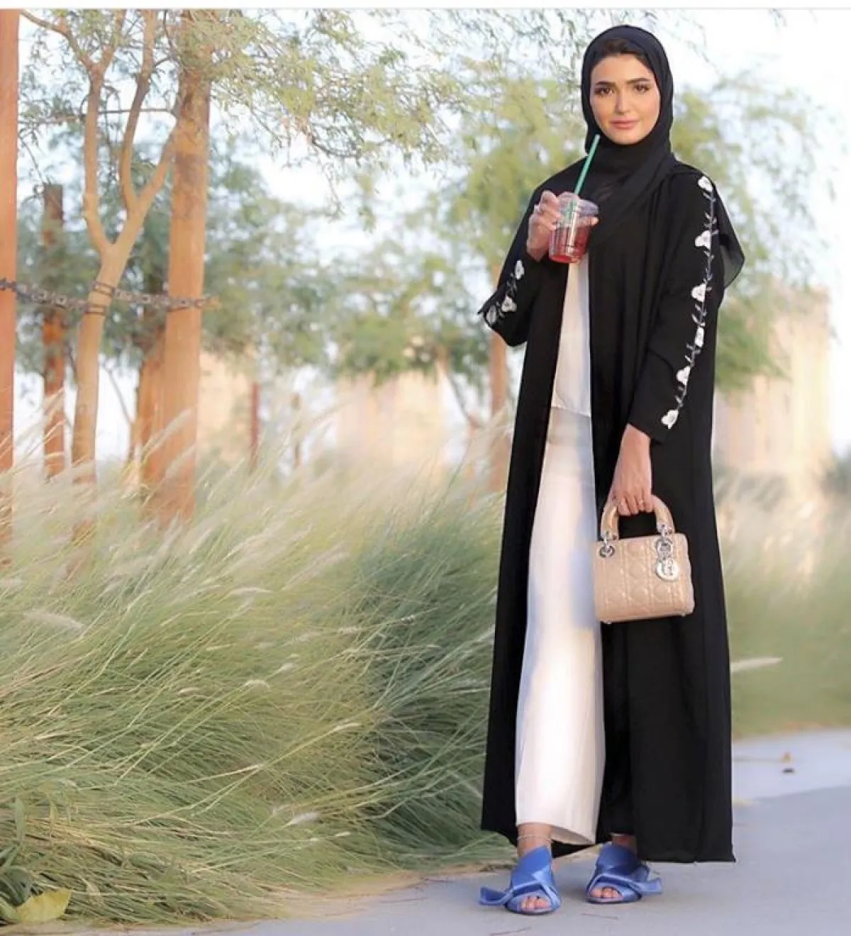 أما في النهار فلم لا تختارين لمشاويركِ العبايات المطرزة عند الأكمام، فلطالما كانت هي المساحة الأفضل ليُبرز مصمّمو العبايات إبداعاتهم على العابايات، كـ العبايات السوداء بتطريزات الخرز على الأكمام الواسعة، ونسقت مع العباية حذاءً وشنطة باللون النيود، ولطالما تميل حنين إلى اعتماد حقيبة وشنطة بلون واحد.