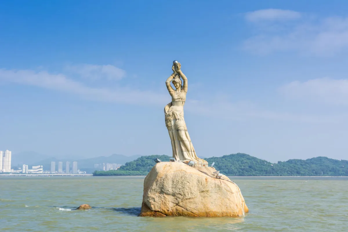 تمثال الصيادة، معلم بارز في مدينة جوهاي، الواقعة على خليج شيانغلو الخلَّاب. وهو مصنوع من الغرانيت، ويرتفع لـ8.7 أمتار، ويزن 10 أطنان. المنحوتة لفتاة جميلة ذات وجه خجول، وهي تقف على الخليج الساحر في وضع أنيق، وترفع لؤلؤة بيديها.