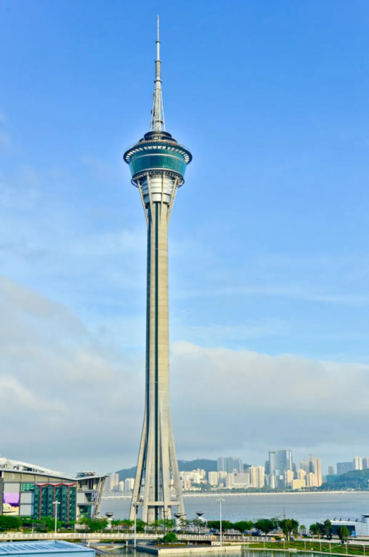 يرتفع البرج لـ338 مترًا، ويوفِّر للزائرين إطلالات بانوراميَّة على أنحاء ماكاو، لا سيَّما دلتا نهر بيرل، من سطح المراقبة والمطعم الدوَّار.