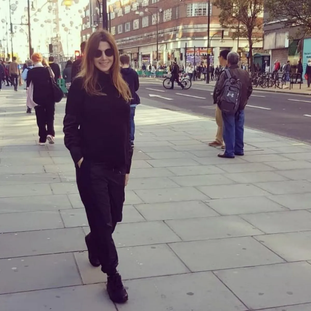 تميل نانسي عجرم إلى الألوان المحايدة، إذا اعتمدت لوناً آمناً للمرأة الحامل من خلال إطلالة كاملة باللون الأسود؛ حيث نسقت كنزة صوف مع بنطلون فضفاض وحذاء رياضي، جميعها بالأسود الذي زاد بشرتها نضارة.