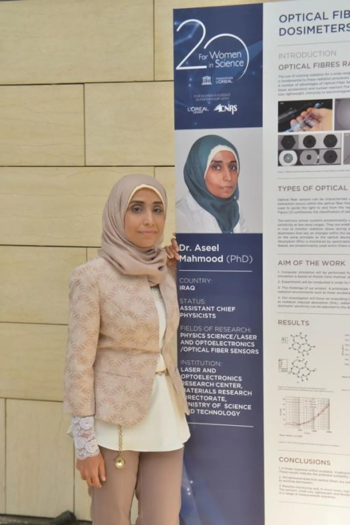 وفي هذا المجال، تؤكد الدكتورة أسيل محمود (دكتوراه في علوم الفيزياء عام 2016 والليزر والكهروبصريات،معاون رئيس فيزيائيين في مركز بحوث الليزر والكهروبصريات (دائرة بحوث المواد) وزارة العلوم والتكنولوجيا (بغداد - العراق) في حديثها لـ "سيدتي" إلى أن "أطروحتي تضمّنت تقديم نوع مبتكر من متحسّسات المجالات المغناطيسية معتمدة على ظاهرة Whispering Gallery Modes باستخدام كل من الألياف البصرية المايكروية والنانوية كألياف ناقلة والألياف البصرية الفوتونية البلورية كألياف متذبذبة مملوءة بسوائل مبتكرة وهي"Ferronematic Liquid Crystals " وتمّ تقديم الإنجاز في مؤتمرات دولية في جمهورية "إيرلندا" و"المملكة المتحدة" وحصلت على دعم مادي كامل من معهد "اوكيناوا" للعلوم والتكنولوجيا في اليابان للالتحاق بورشة العمل ONNA 2017 حيث كان جزء من هذه الورشة مخصصًا لدعم النساء العاملات في مجال العلوم والتكنولوجيا".