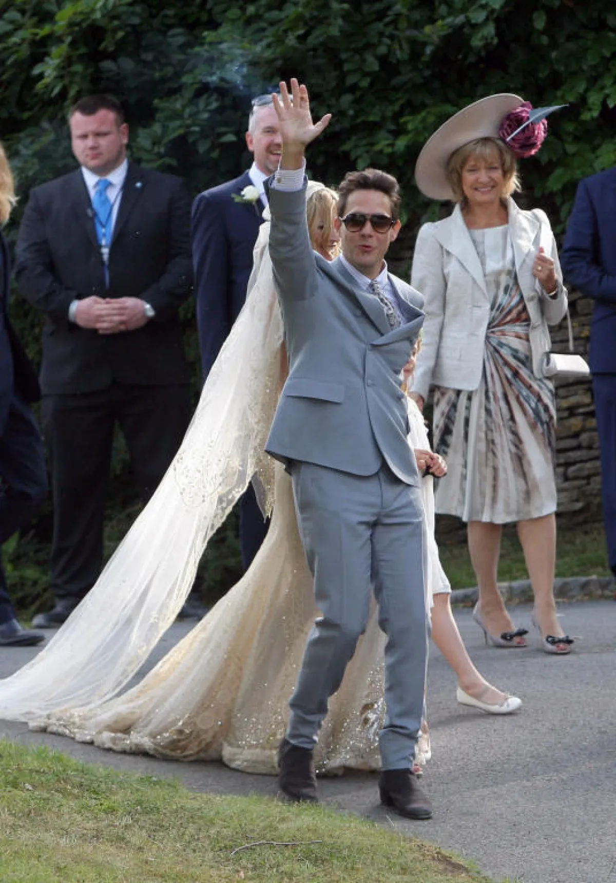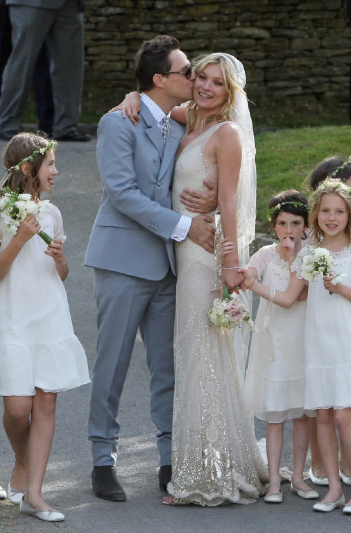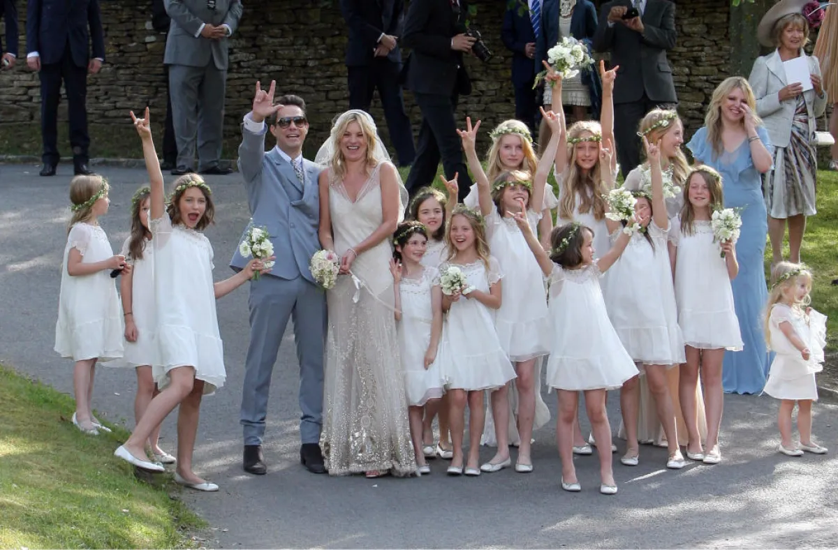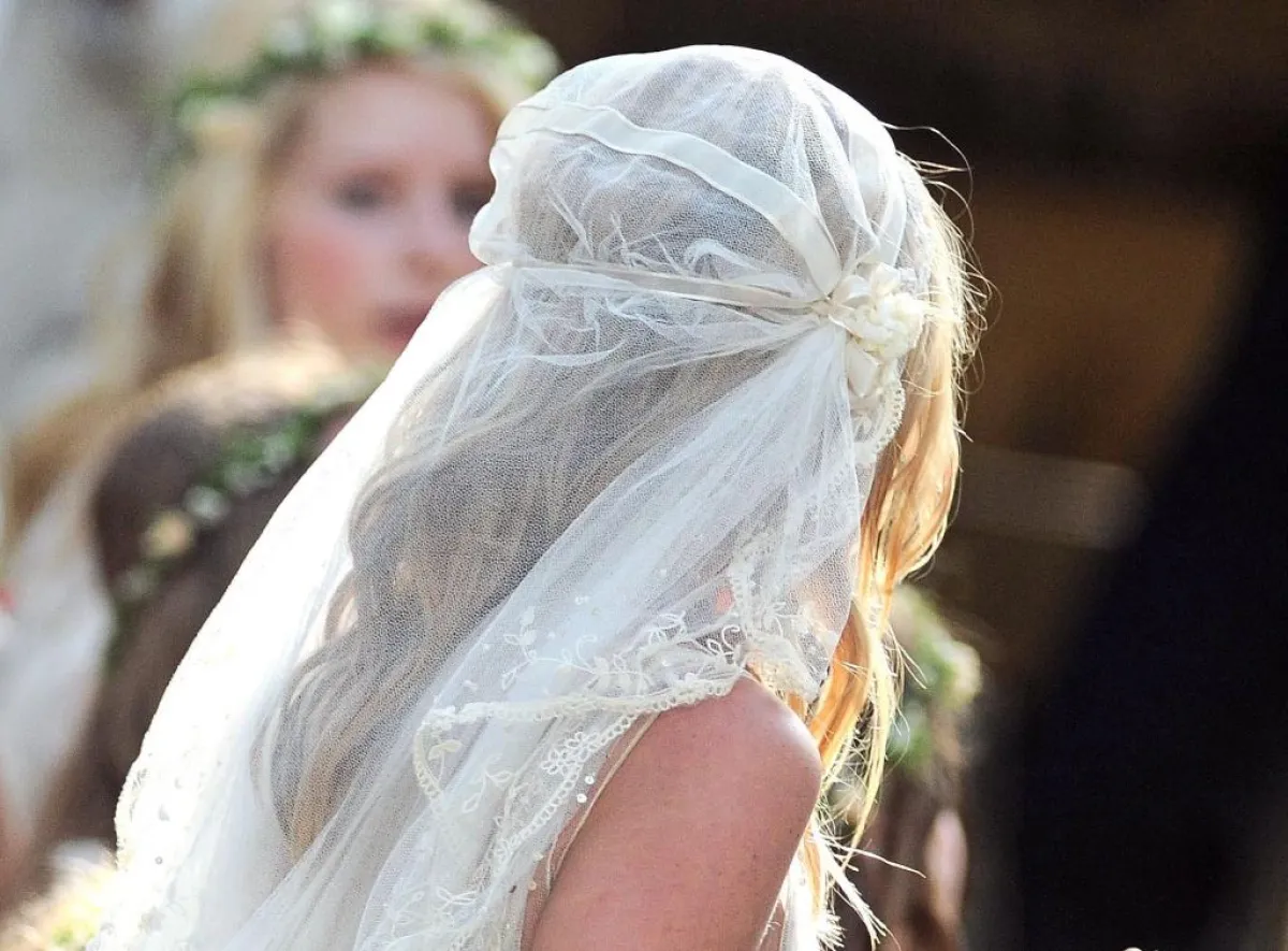 دعينا اليوم، عروستنا، نستذكر سويّاً زفاف Kate Moss وJamie Hince الذي جرى في الأول من تموز عام 2011. احتفل الثنائيّ بزفافهما داخل قصر فخم في "ساوث روب"، في إنجلترا، حيث ارتدت العروس فستان زفاف من تصميم غاليانو، وانتعلت حذاءً من تصميم مانولو بلاهينك. دخلت العروس زفافها بسيّارتها المفضّلة "رولز رويس" Rolls Royce، بمكياجها البسيط الناعم، مع طرحة مميّزة لفّت بها رأسها، مع اكسسوارات ناعمة. يُذكر أنّ ابنة Moss المدعوة Lila Grace قد حضرت الزفاف، ورافقت والدتها طوال الحفلة. وكان من الحضور أيضاً عارضة الأزياء وصديقة العروس Naomi Campell، ومصمّمة القبّعات الأشهر في العالم Philip Treacy. طالعي صور زفاف عارضة الأزياء Kate Moss، وشاركينا تعليقاتك.