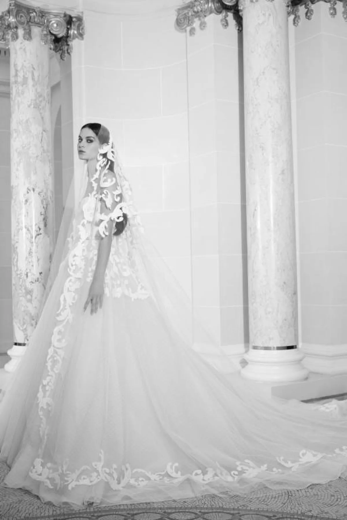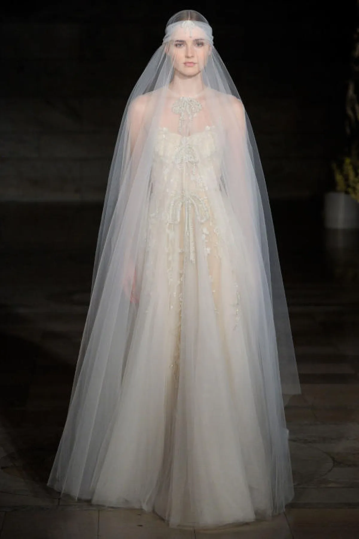 وتناغمت الطرحة التول الطويلة مع فساتين الزفاف التول لإطلالة رومانسية حالمة، مثل فستان زفاف ريم عكرا Reem Acra، وفستان زفاف إيلي صعب Elie Saab.