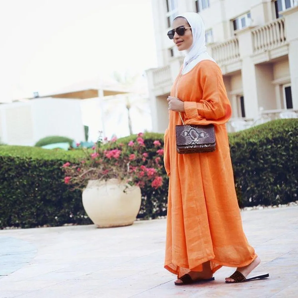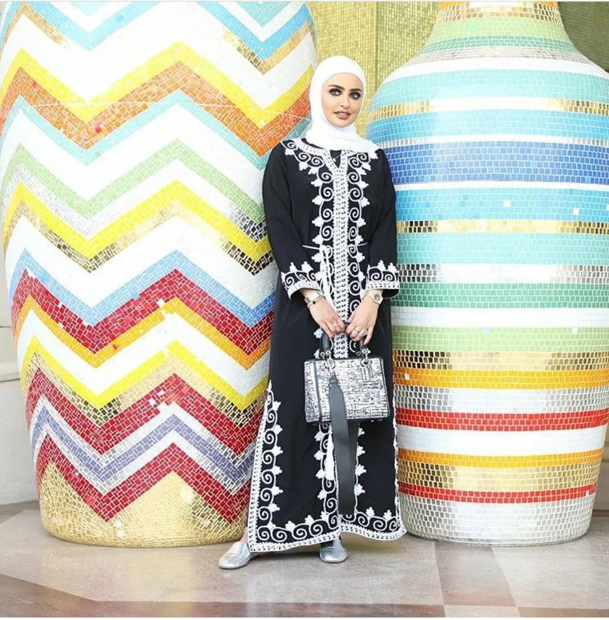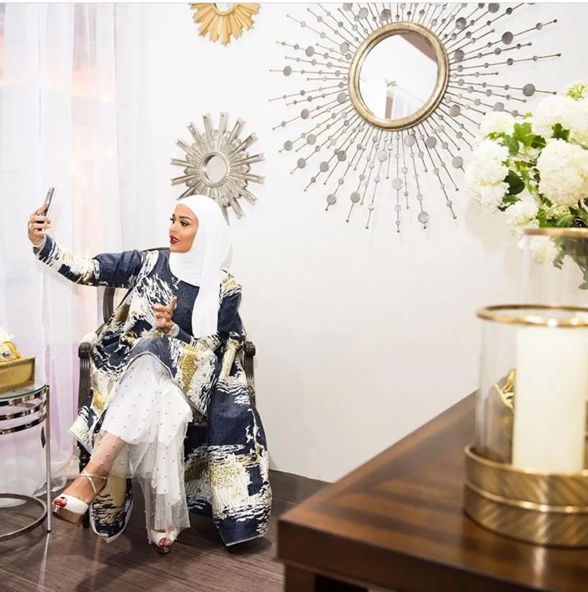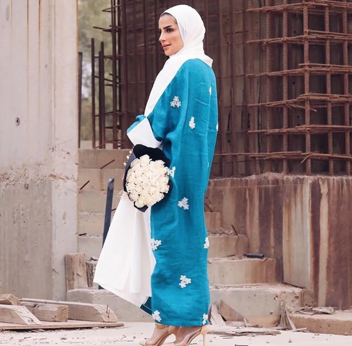 بينما المدونة فطامي بو حمد فهي تميل أكثر للمسات المبهجة عند اختيار العباية الملونة النهارية، كاطلالتها بالعباية بلوني الأبيض والأزرق الزاهي، مع الكعب العالي، أو بالعباية البرتقالية المشعّة، مع صندل مفتوح من فيندي Fendi، وشنطة ميني كروس من جلد التمساح.