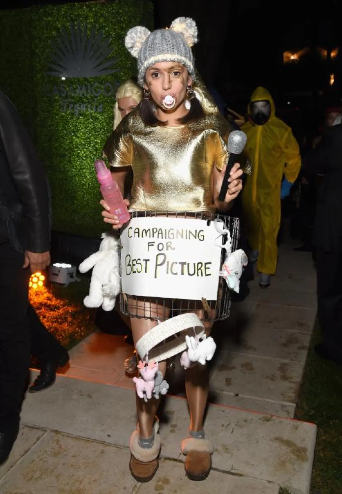 ميراندا كوسجروف Miranda Cosgrove: اختارت زيًّا يشبه شخصية "إلكترو" فارتدت تنورة قصيرة باللون الأسود، وكنزة بيضاء مع المكياج المرعب، وشعرًا مستعارًا أسود بخطين باللون الأبيض.
