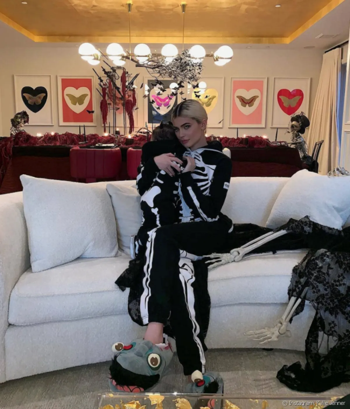 كايلي جينر Kylie Jenner: ارتدت زيًّا يشبه الهيكل العظمي، هي وابنتها الرضيعة التي تحتفل معها بعيد الهالويين لأول مرة.