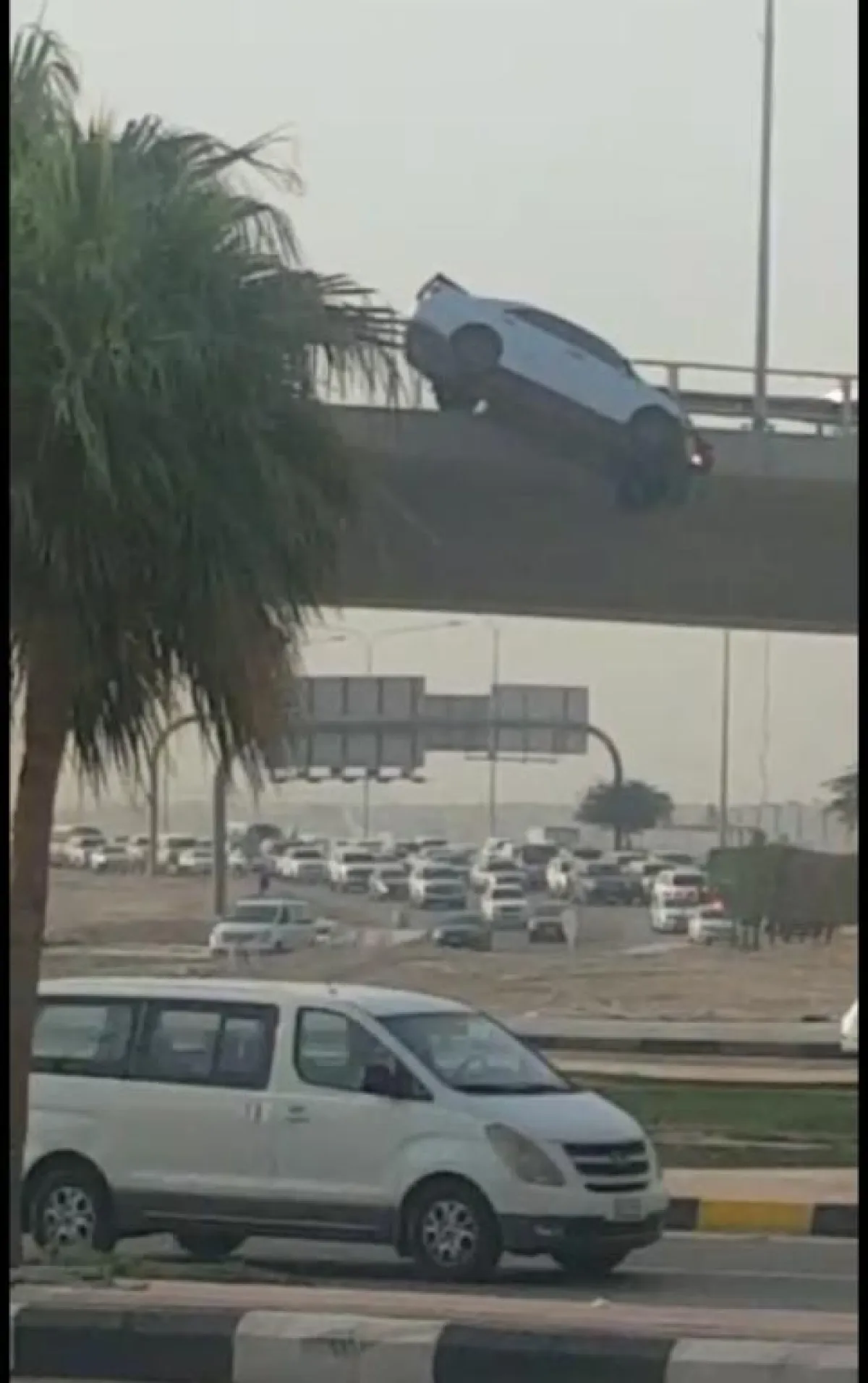 سياج حديدي يمنع سقوطَ مركبة من ارتفاع 25م عن سطح الأرض بالخبر