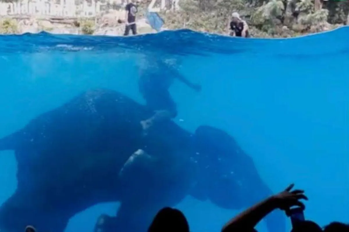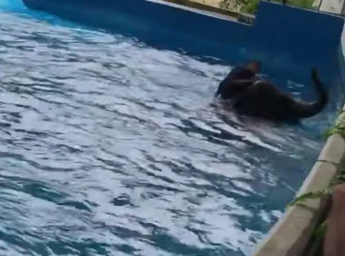 فى عرض آثار سخط واستياء نشطاء حقوق الحيوان، بسبب إجبار فيل لأداء الحيل تحت الماء لأجل مشاهدة السياح له.