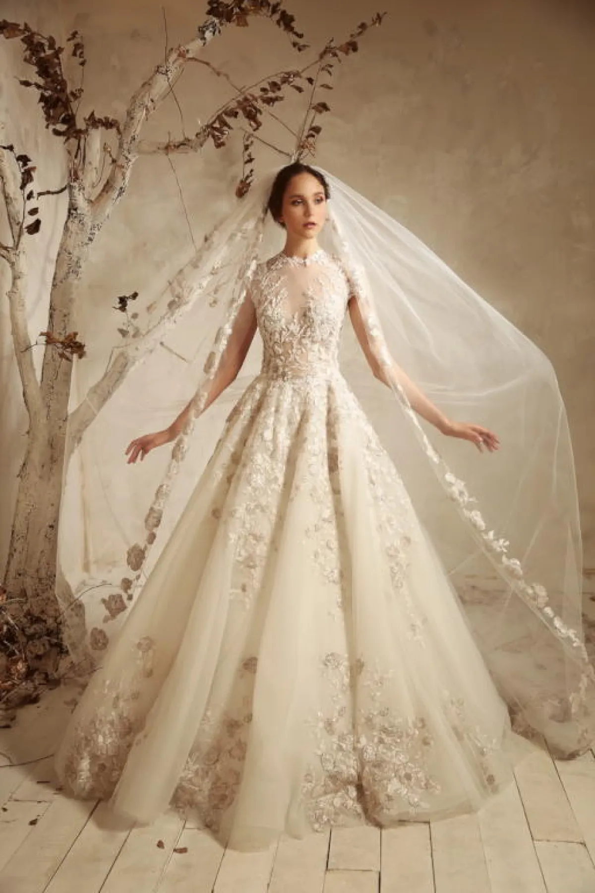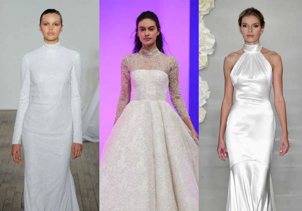 ظهرت العديد من موديلات فساتين الزفاف بالياقة المرتفعة في أسبوع العروس لموسم خريف وشتاء 2019 /2020، مع إختلاف موديلات الفساتين لترضي رغبات العرائس وأذواقهن.