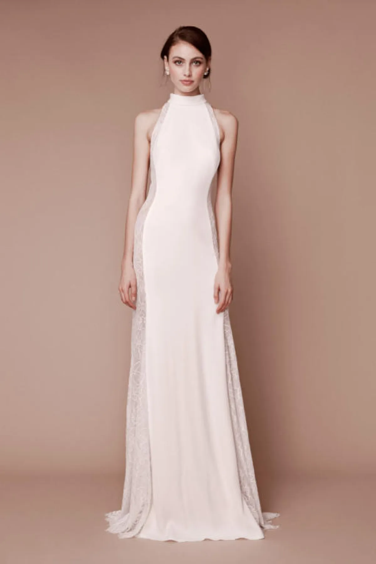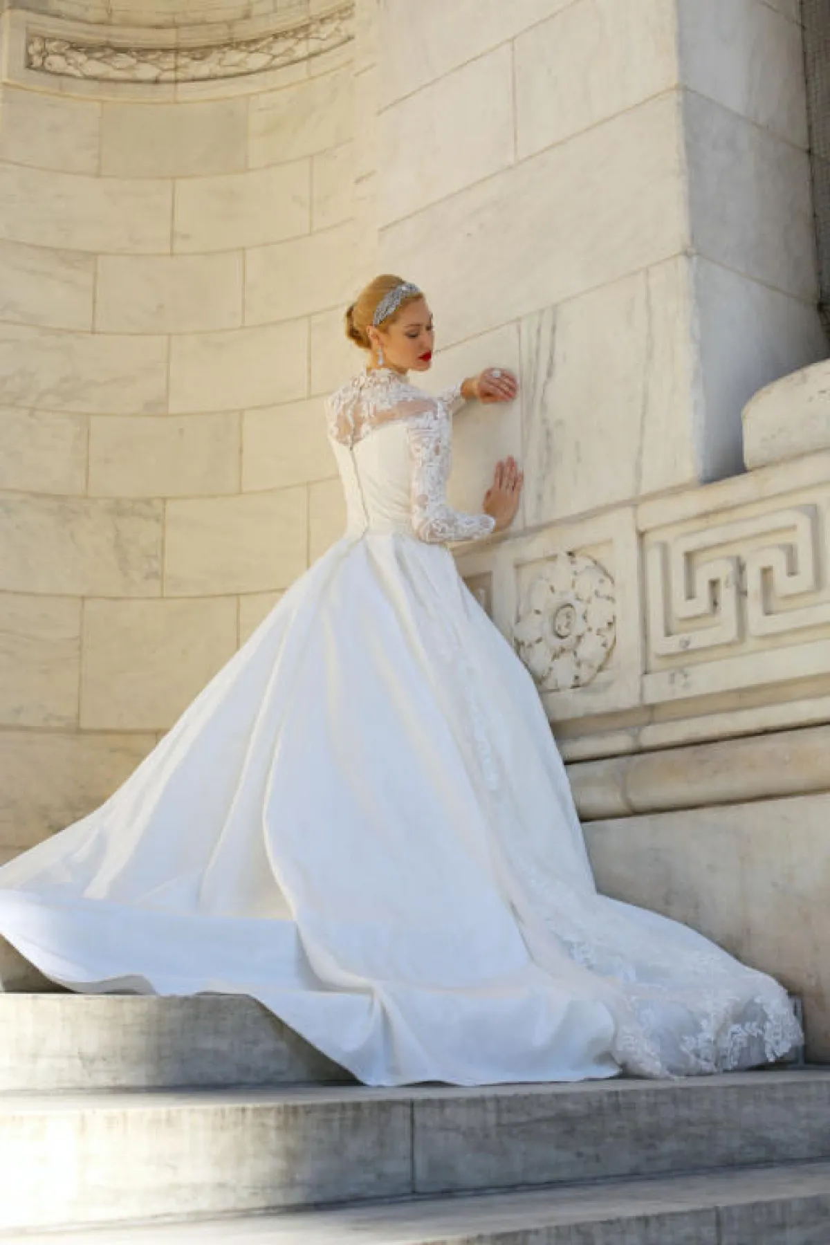 وتعد هذه الصيحة مثالية للـ عروس المحجبة، وذلك في حالة إختيار تصميم بأكمام طويلة وغير كاشف للجسم، مثل فستان زفاف أليسون ويب Allison Webb بالتصميم الناعم.