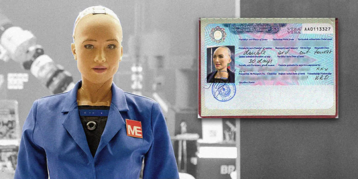 وبعد استلام جميع خدمات الحكومة الإلكترونية في أذربيجان، أصدر "Asan" تأشيرة إلكترونية للروبوت "صوفيا" عند وصولها إلى باكو.