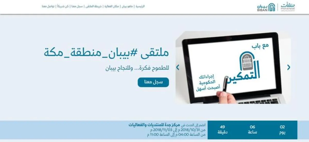 يشار إلى أن ملتقى بيبان، يعنى بتهيئة البيئة المناسبة للمنشآت الصغيرة والمتوسطة القائمة، بما يضمن استمرارها ونموها، ويحفز دخول منشآت جديدة للسوق باحتواء المبادرين والمهتمين بمجال الأعمال، وإنشاء المشاريع وتجاوز مراحل التأسيس بسلاسة، والتعرف على مراحل استقطاب المستثمرين، وخطوات إجراءات الجهات الحكومية وجهات الدعم والتمكين ويقدم لهم استشارات في كيفية استثمار تجارب الآخرين لتوسيع مداركهم الإدارية في بناء هيكل مشاريعهم وإنجاحها، وهو بذلك يشرع كل باب إجرائي وإلهامي أمام هؤلاء الشباب. ويستقبل ملتقى بيبان زواره من الساعة الرابعة عصراً وحتى الـ 11 مساءاً، من (الأربعاء) وحتى السبت المقبل ( 3 نوفمبر).