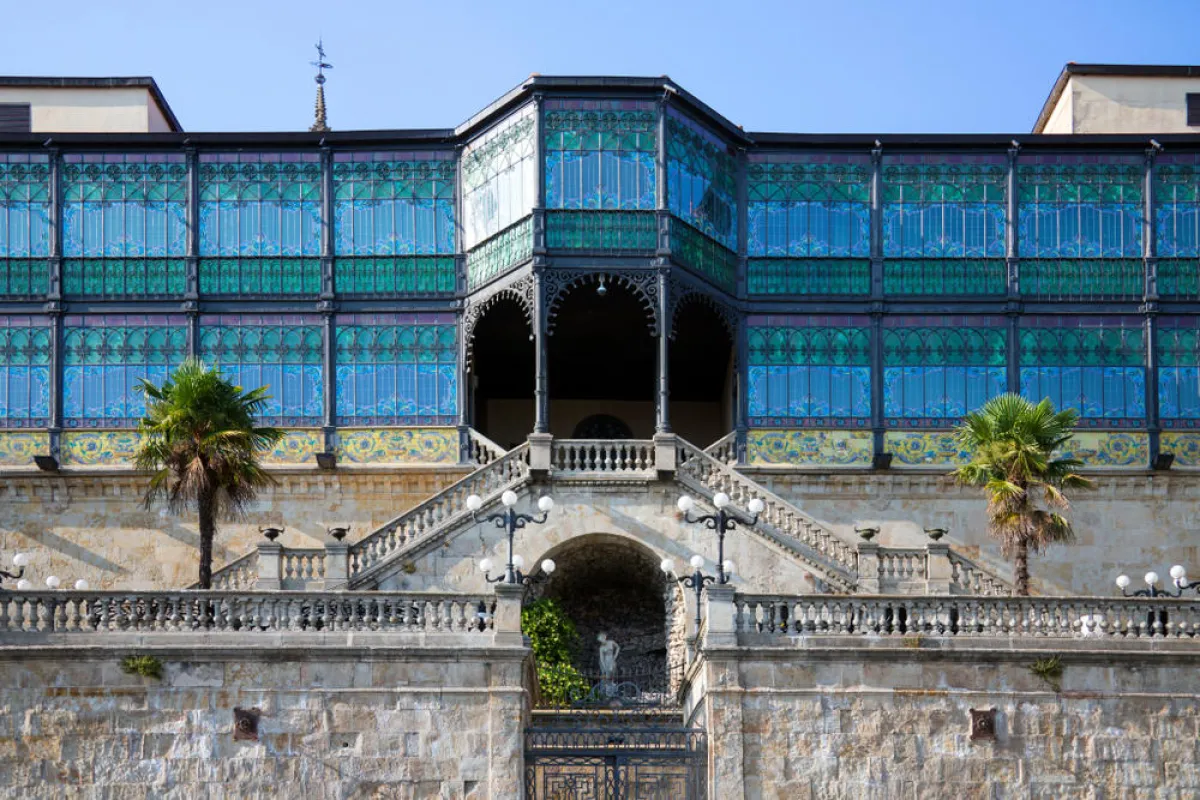 يتمتَّع البناء بواجهة جميلة مصنوعة من الحديد والزجاج الملوَّن.