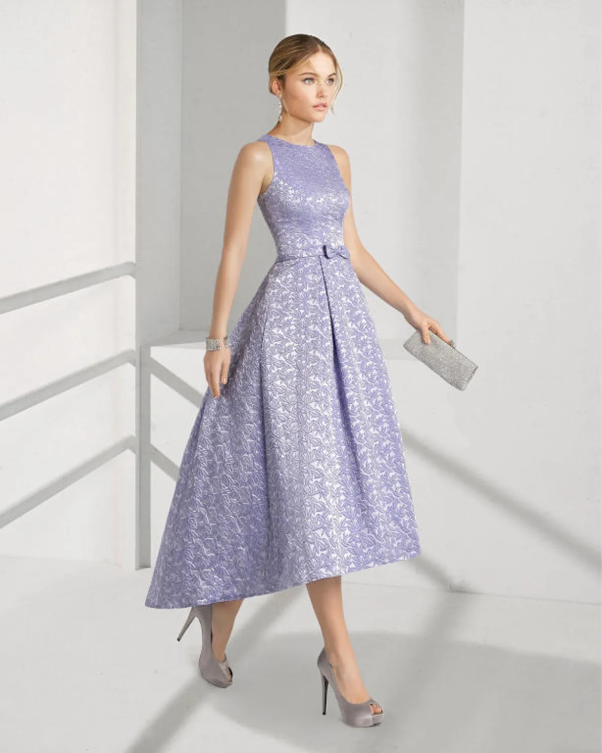 أيضاً قدمت ماركة سان باتريك San Patrick الفساتين الليلكي البسيطة بالأكمام الدانتيل الشفافة والقصّات العمودية.