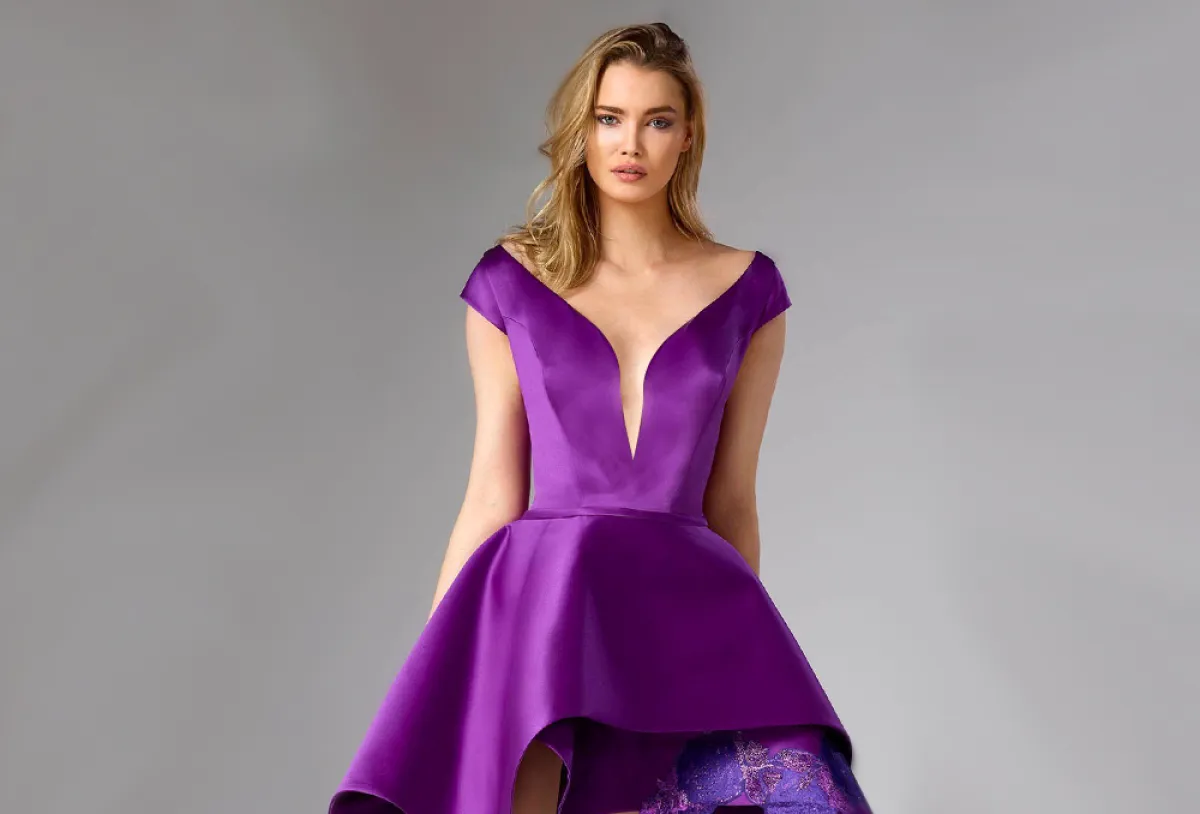 من أجمل فساتين أرجواني للخطوبة، تلك التي قدمها المصمم اللبناني إيلي صعب Elie Saab، مثل الفستان المنفوش بـ التول مع تدرجات الأرجواني الآسرة، والقصّة الأوف شولدر الأنثوية.