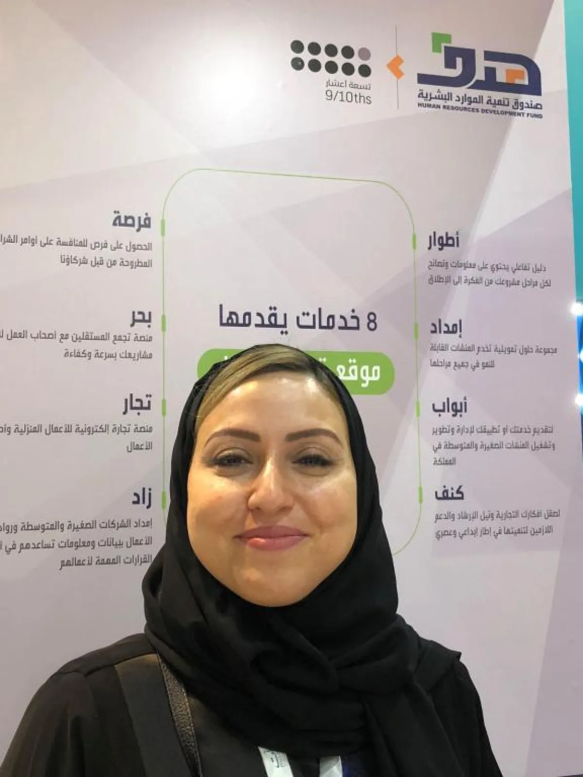 ومن البرامج التي عرضت أمام الزوار، برنامج تسعة أعشار بمشاركة من صندوق تنمية الموارد البشرية "هدف"، والذي يوفر 8 حلول لدعم ريادة الأعمال والمنشآت الصغيرة والمتوسطة، ويُعدّ البرنامج من منطلقات رؤية المملكة 2030 وبرنامج التحول الوطني.