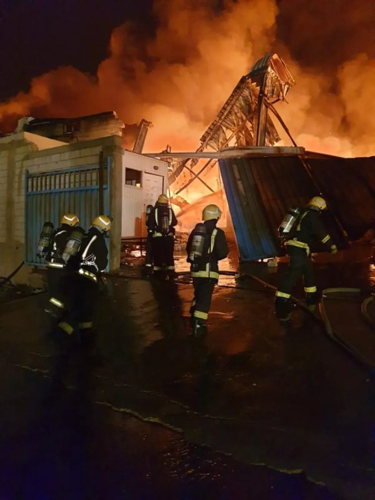 وتابع "إن عدد من الفرق تدعمها فرق الإنقاذ باشرت إخماد الحريق من ثلاث محاور رئيسية بهدف السيطرة عليه، وإخماده مستخدمة المدافع الأرضية وسيارات السلالم للوصول إلى بؤر الاشتعال المنتشرة بكثافة داخل المستودع، بينما عمدت فرق أخرى في الحيلولة دون وصول الحريق لمستودعات متاخمة لمنطقة الحريق مستخدمة السواتر المائية".