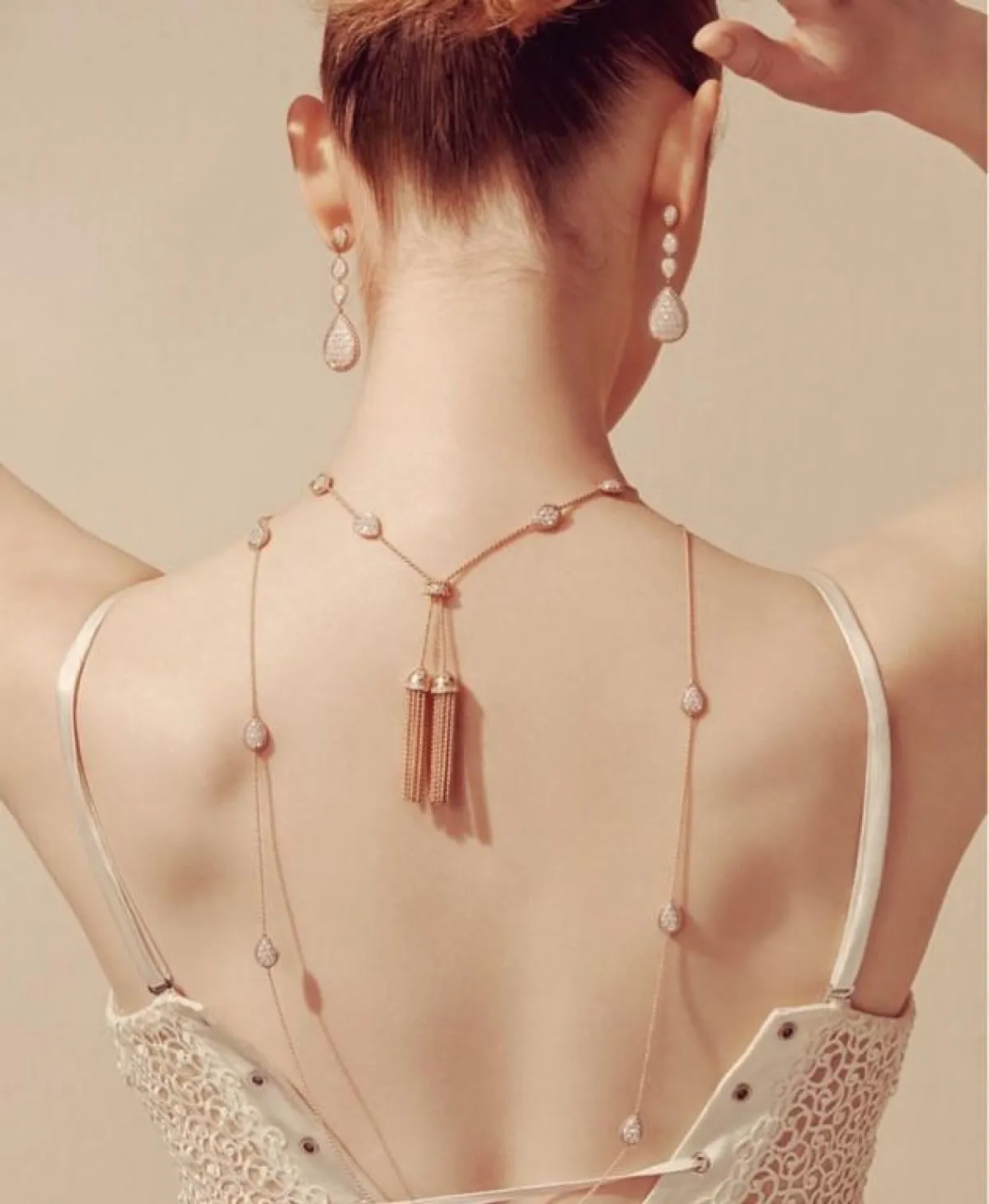 ومن السلاسل الذهبية التي لفتت نظرنا بتصميمها الأنيق، هذه السلسلة من مجموعة سيربانت بوهيم Serpent Boheme من بوشرونBoucheron والتي يتدلى منها بعض الشراريب الذهبية الساحرة.