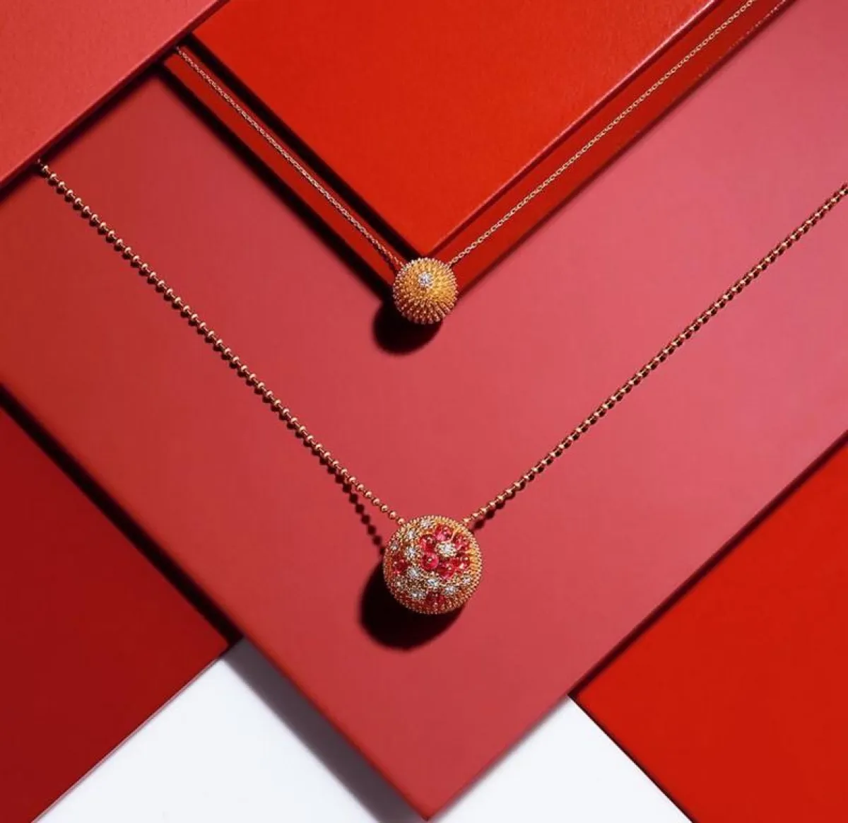 تنوّعت تصاميم العقود وسلاسل الذهب التي قدّمتها دور المجوهرات العالمية هذا العام، لتضعك في حيرة من أمرك أمام اختيار التصميم الأجمل والأكثر انسجاماً مع إطلالاتك. وقد تميّزت القطع بعراقة صياغتها وجمالها بالإضافة إلى لمسة الترف التي أضافتها الأحجار الكريمة التي زيّنت بعض التصاميم.