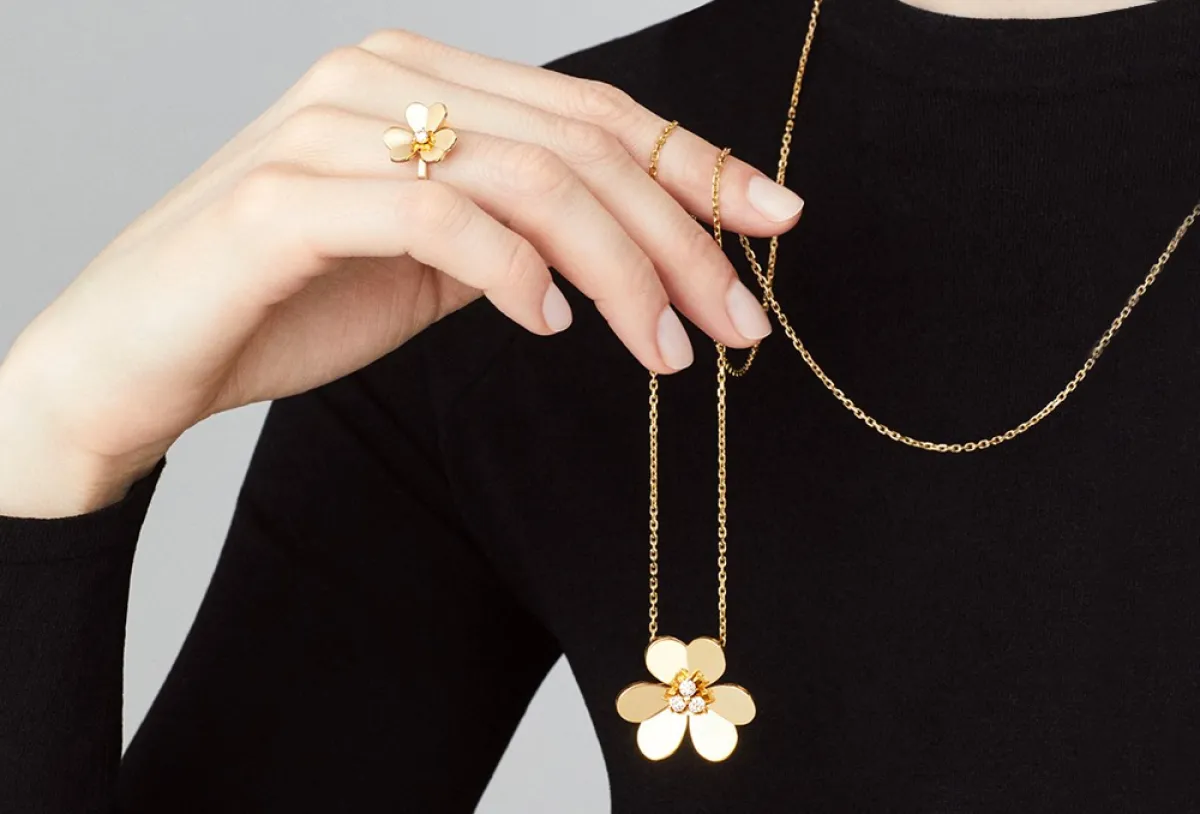 ومن دار فان كليف اند أربلز Van Cleef&Arpels التي قدمت موديلات سلاسل ذهب لافتة، سحرتنا هذه السلسلة التي أتت على شكل زهرة متفتحة ضمن مجموعة فريفول Frivole وهي ذات تصميم ناعم وأنثوي يليق بمختلف المناسبات.